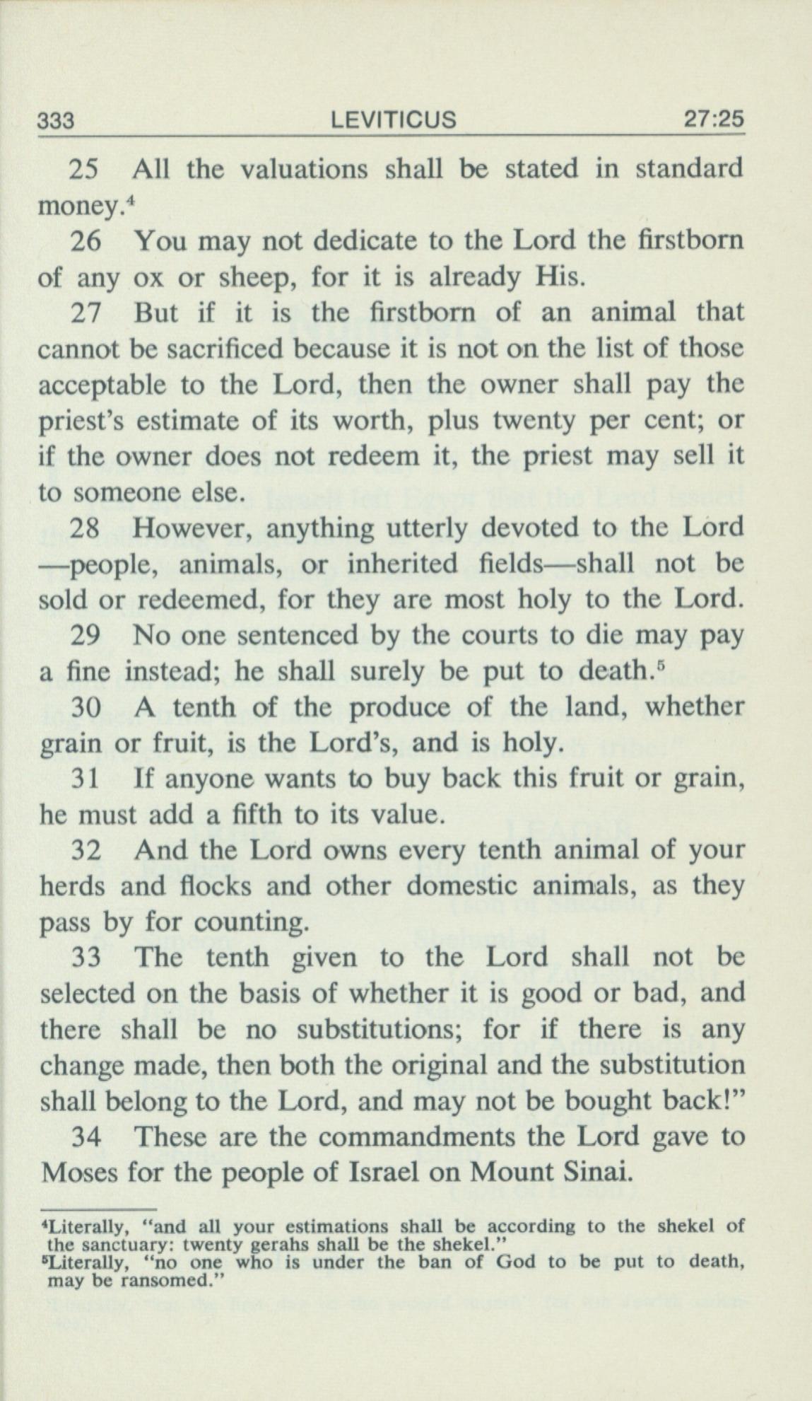 1969年Living Books of Moses 利未記 27 章 25 節到 27 章 34 節