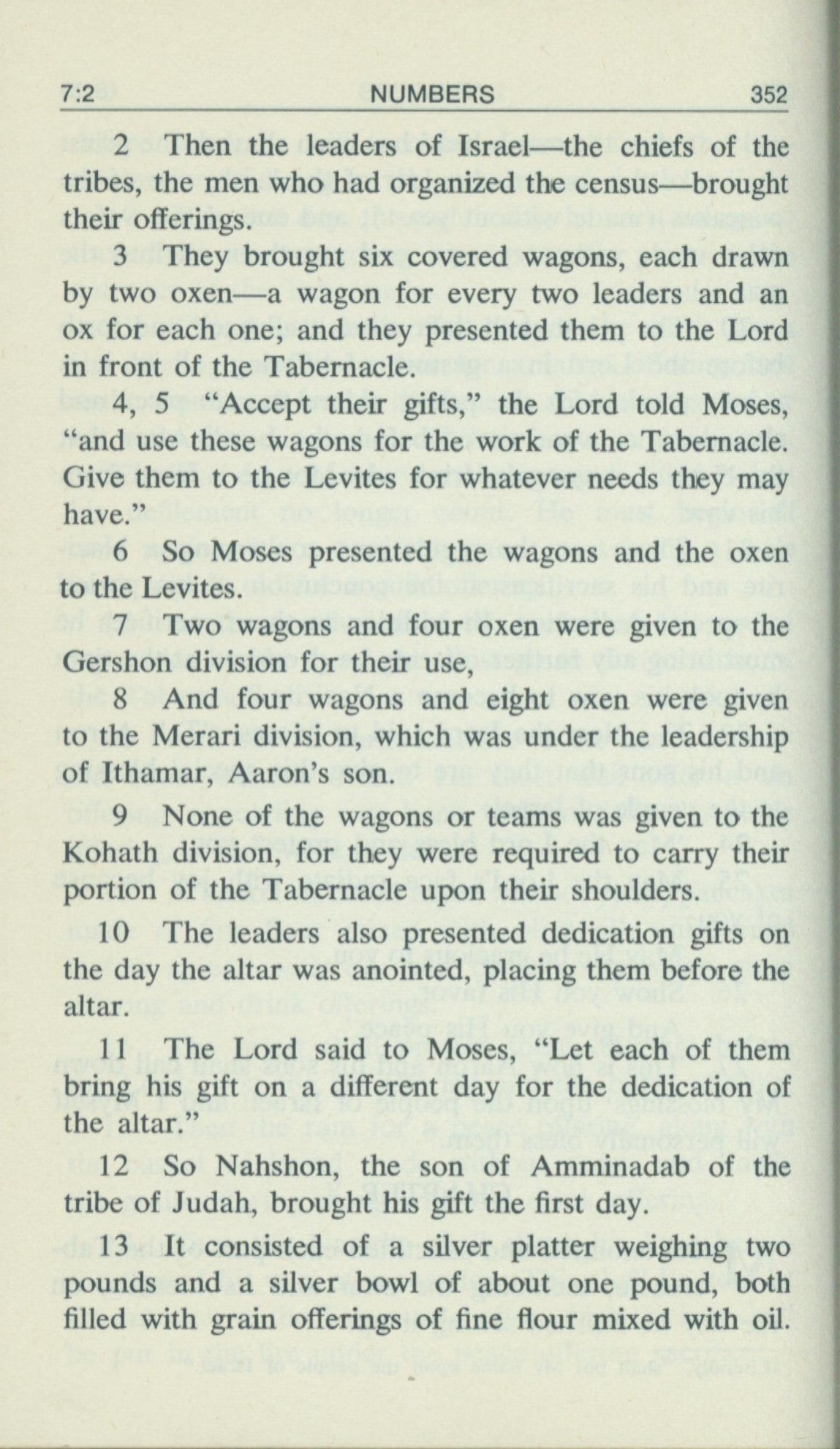 1969年Living Books of Moses 民數記 7 章 2 節到 7 章 13 節