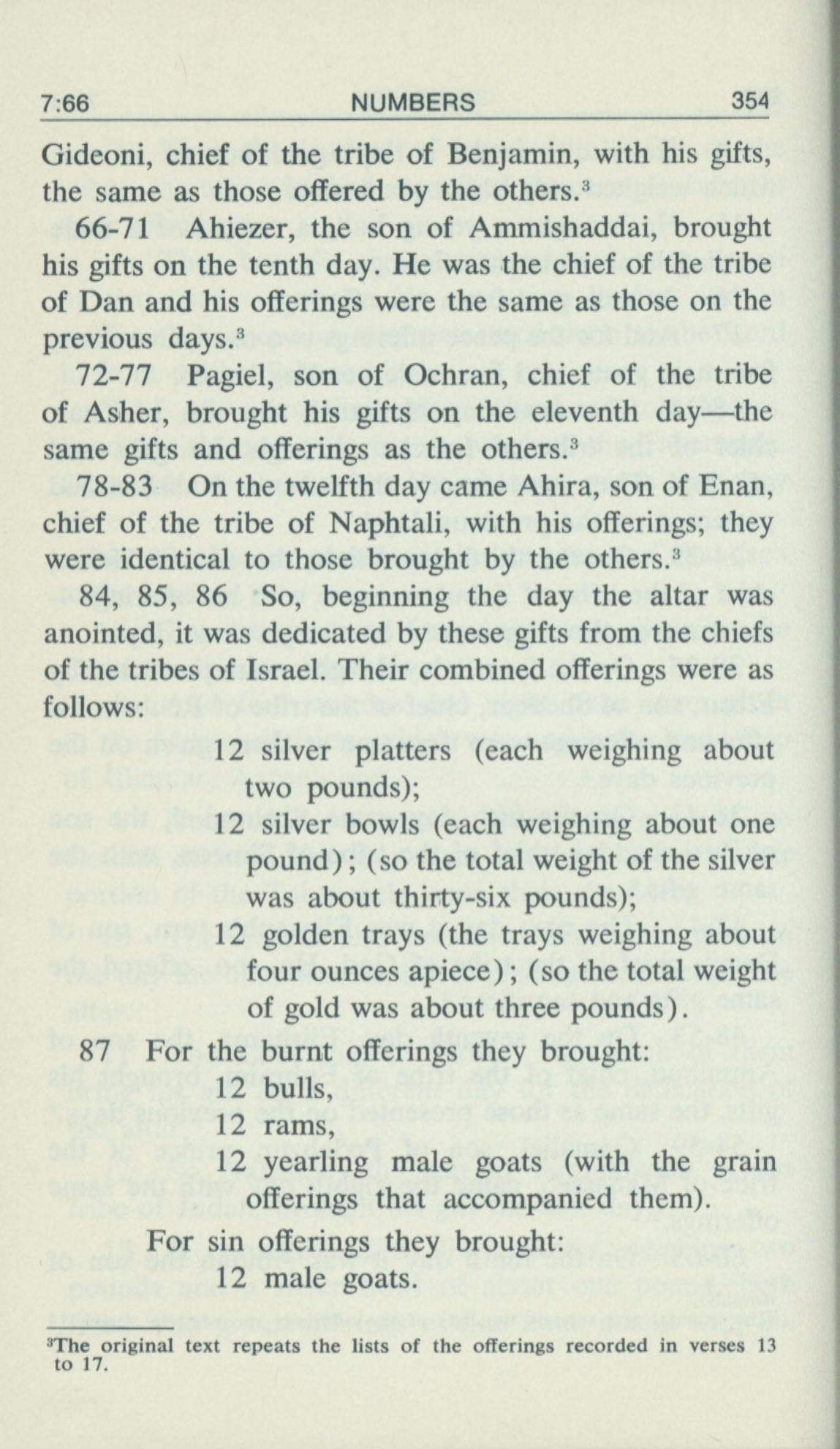 1969年Living Books of Moses 民數記 7 章 66 節到 7 章 87 節