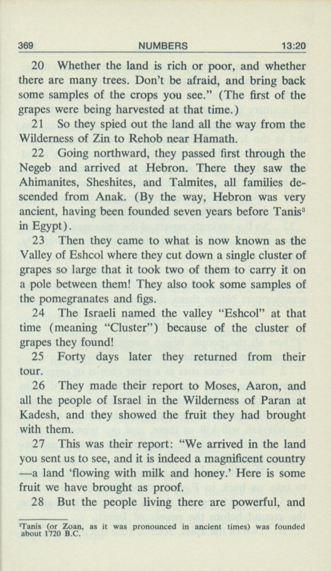 1969年Living Books of Moses 民數記 13 章 20 節到 13 章 28 節