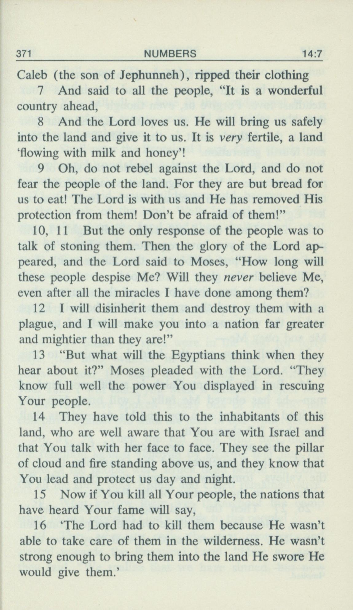 1969年Living Books of Moses 民數記 14 章 7 節到 14 章 16 節