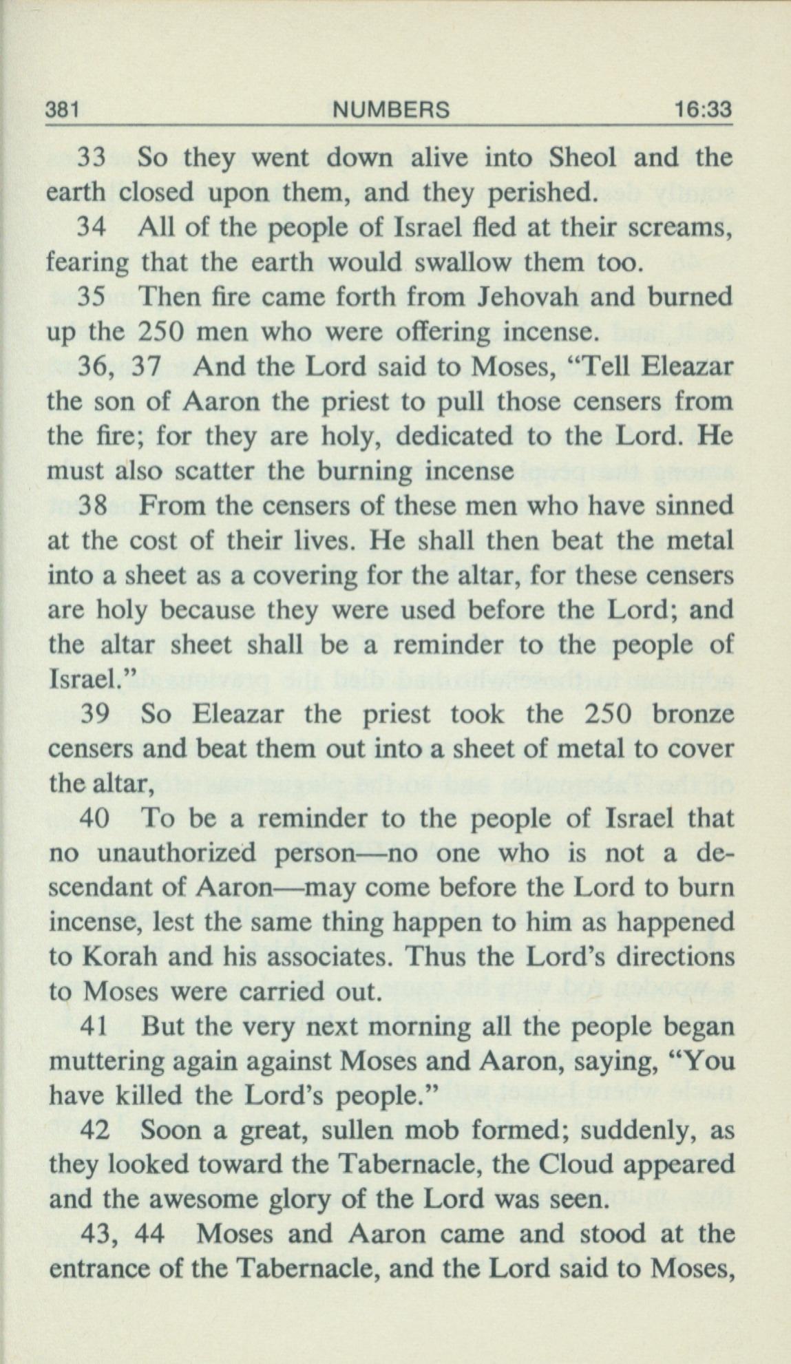 1969年Living Books of Moses 民數記 16 章 33 節到 16 章 44 節