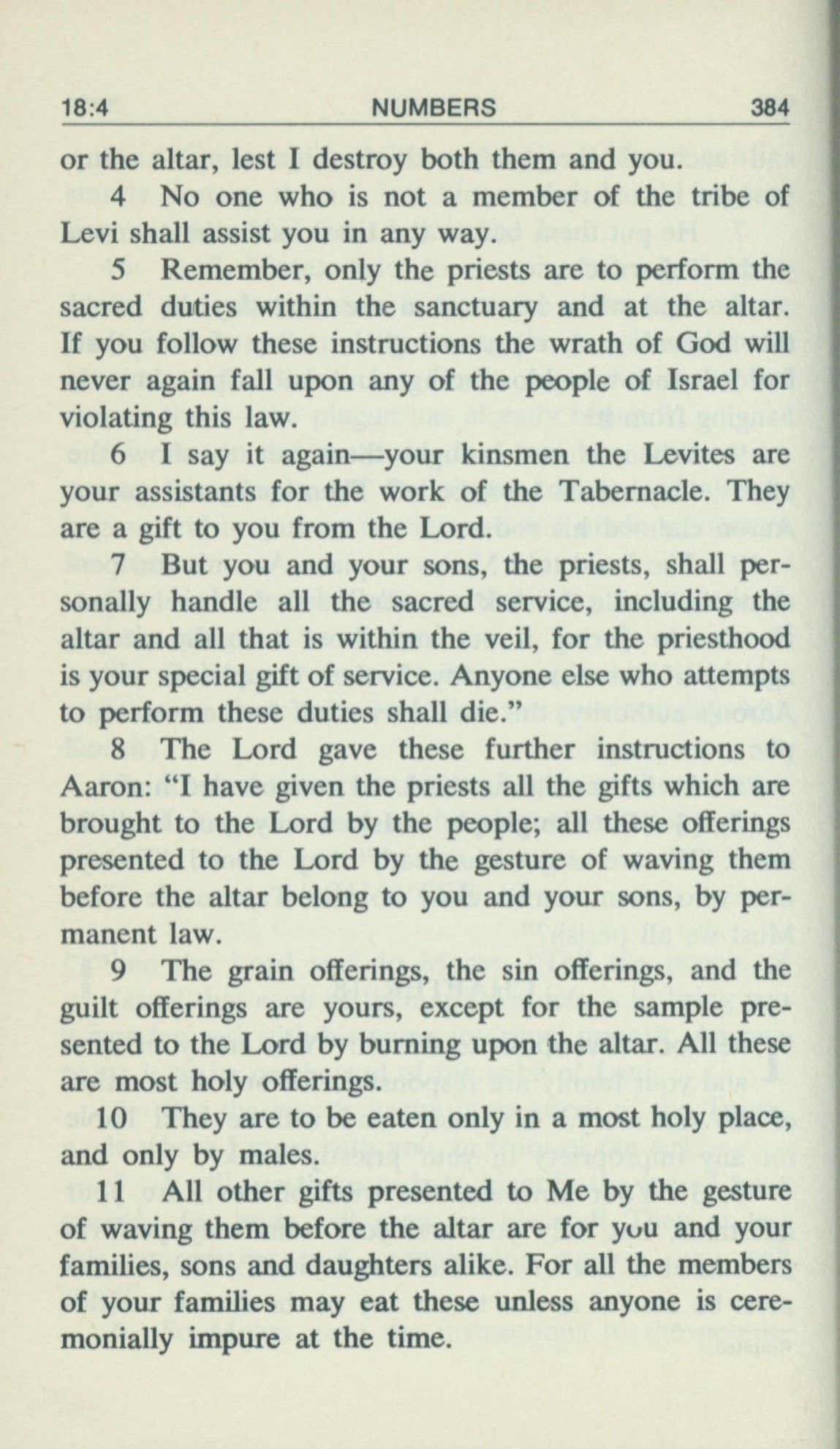 1969年Living Books of Moses 民數記 18 章 4 節到 18 章 11 節