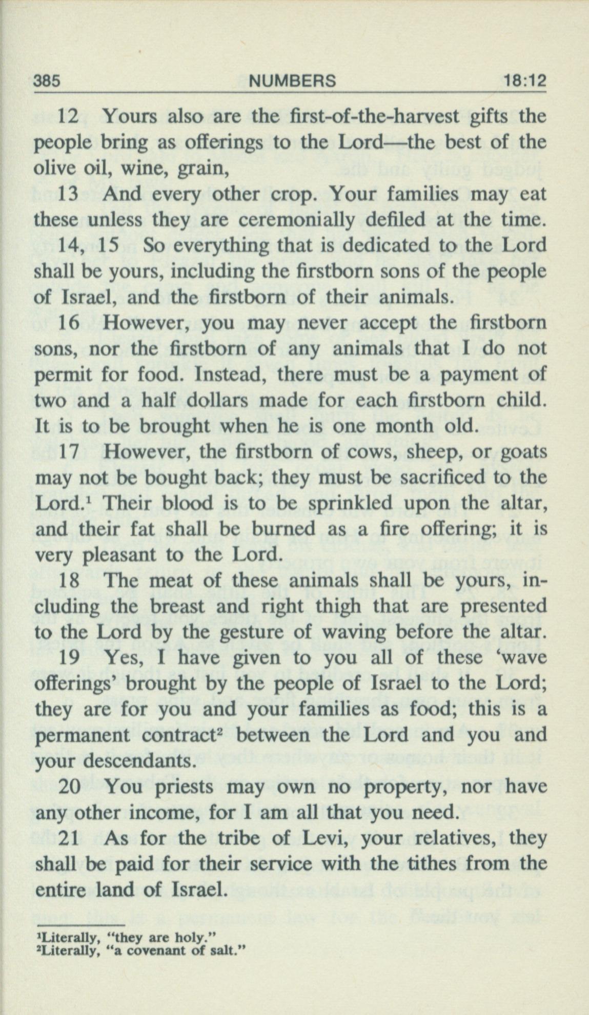 1969年Living Books of Moses 民數記 18 章 12 節到 18 章 21 節