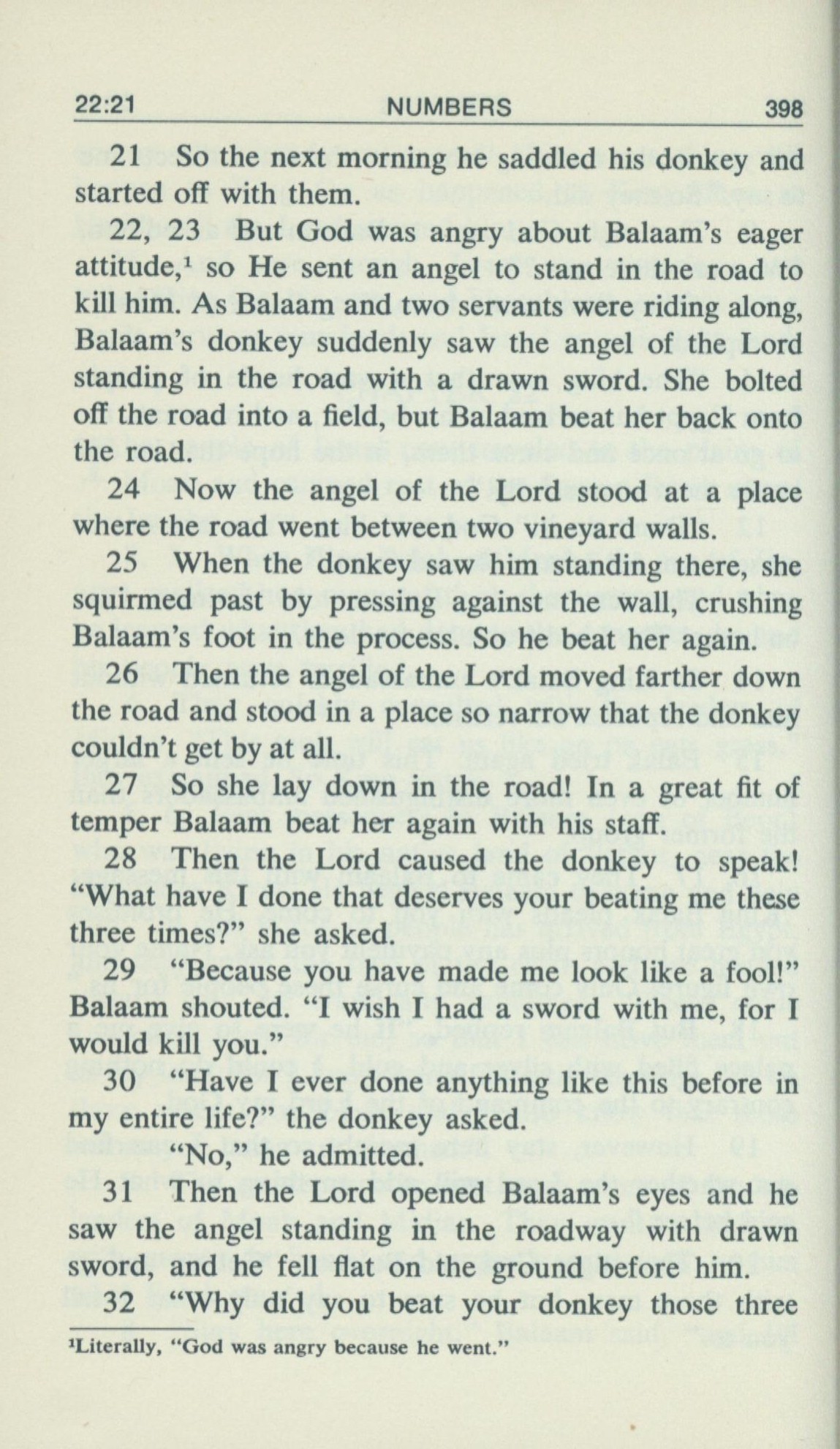 1969年Living Books of Moses 民數記 22 章 21 節到 22 章 32 節
