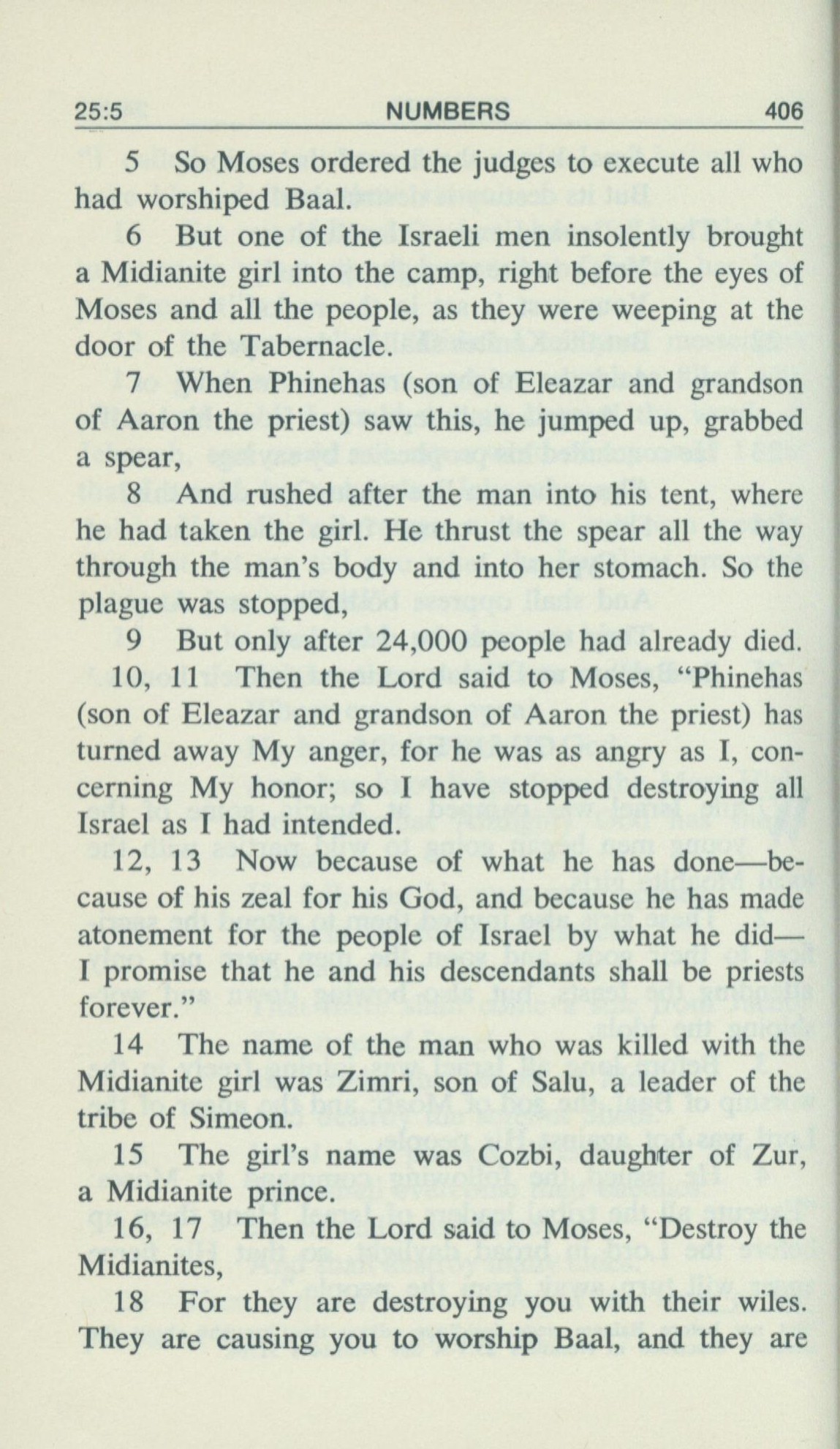1969年Living Books of Moses 民數記 25 章 5 節到 25 章 18 節