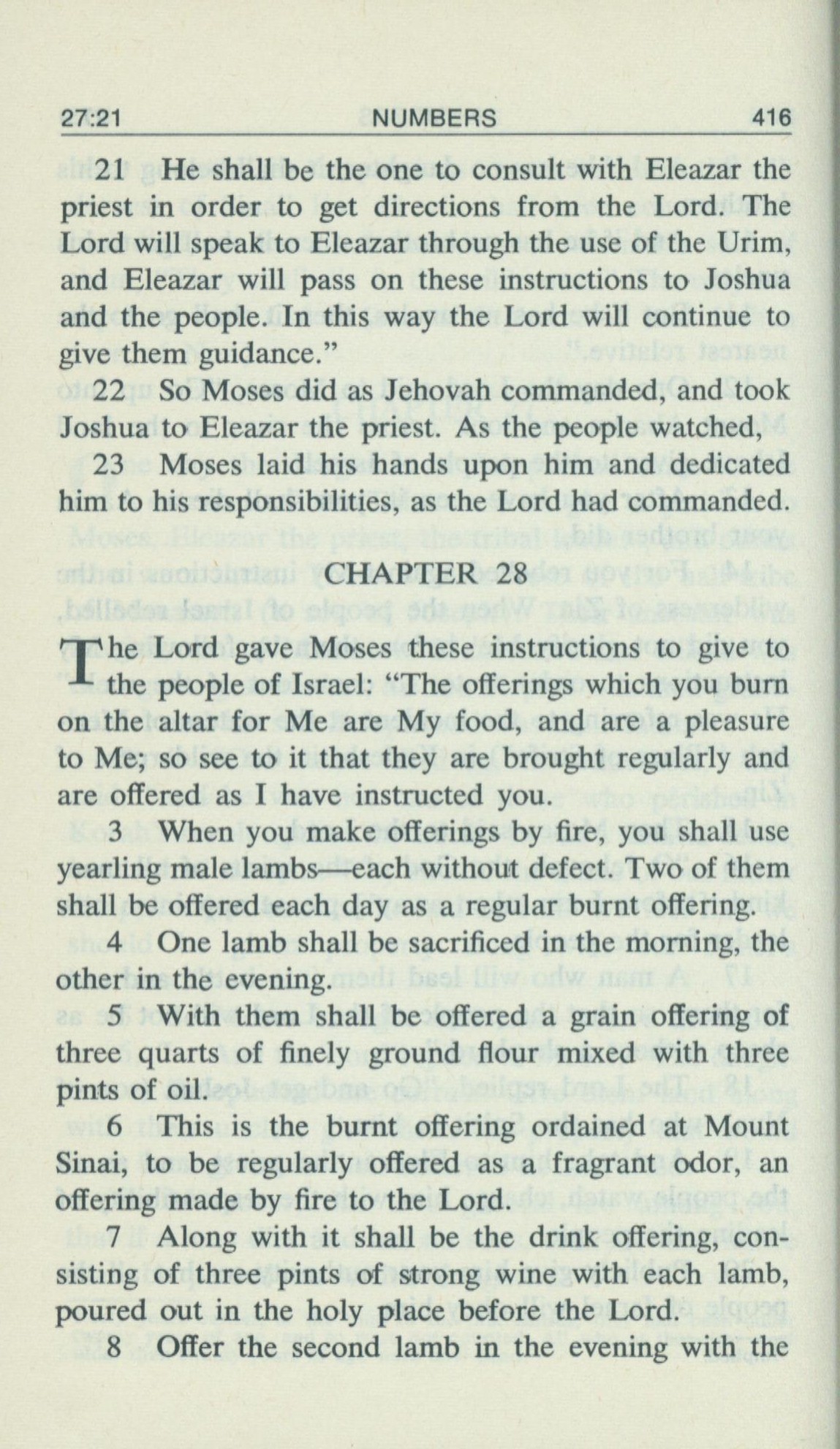 1969年Living Books of Moses 民數記 27 章 21 節到 28 章 8 節