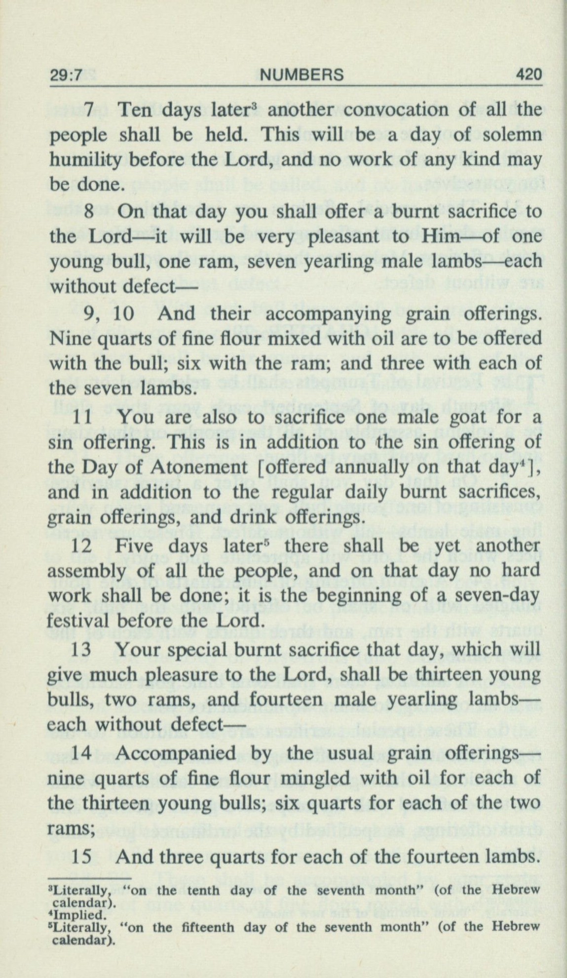 1969年Living Books of Moses 民數記 29 章 7 節到 29 章 15 節
