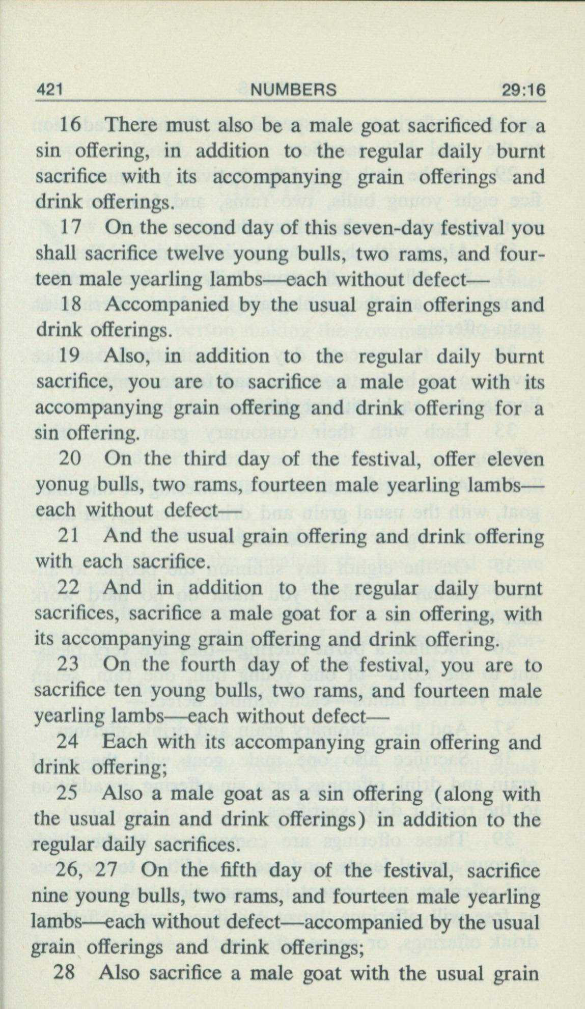 1969年Living Books of Moses 民數記 29 章 16 節到 29 章 28 節