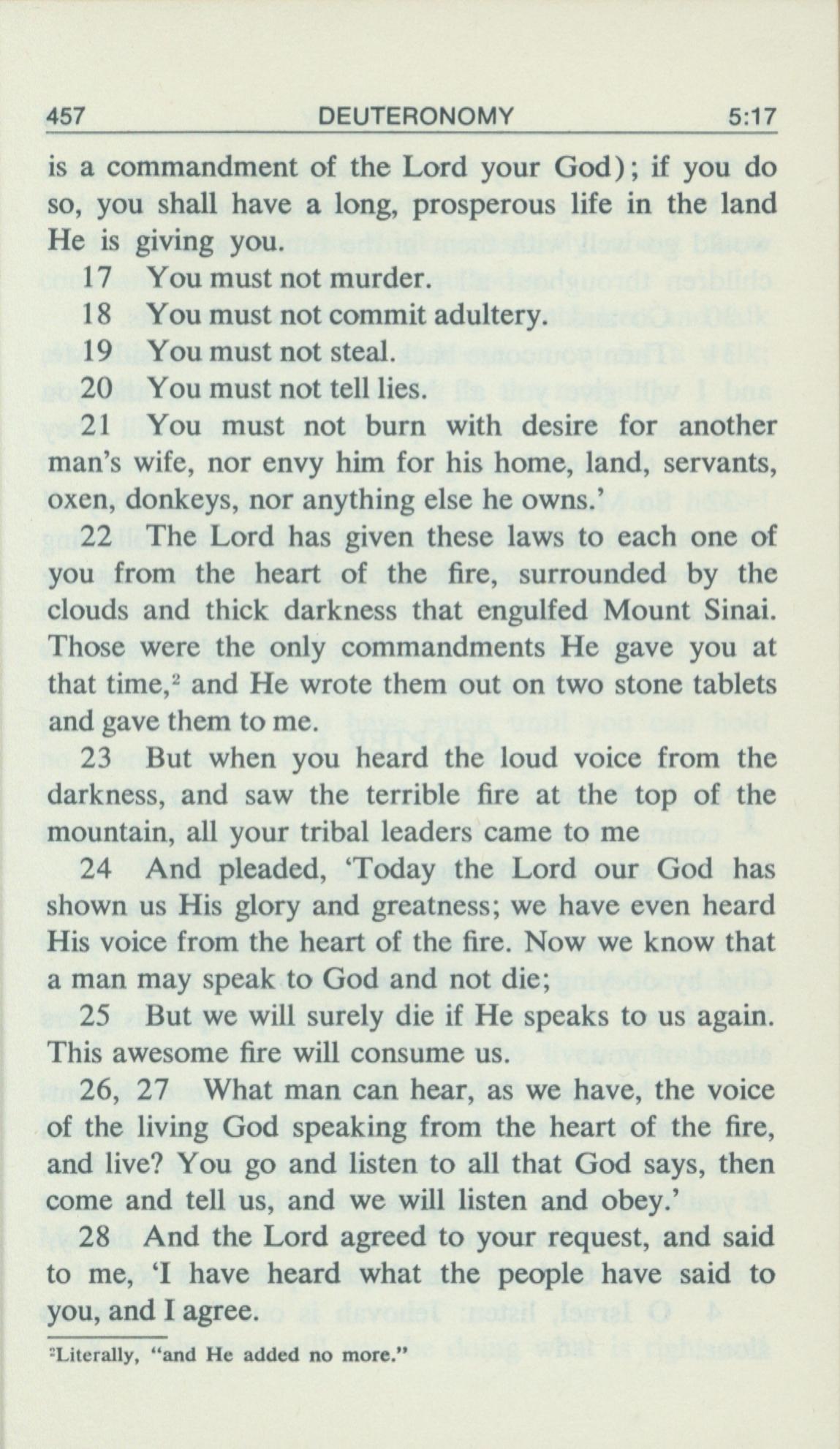 1969年Living Books of Moses 申命記 5 章 16 節到 5 章 28 節