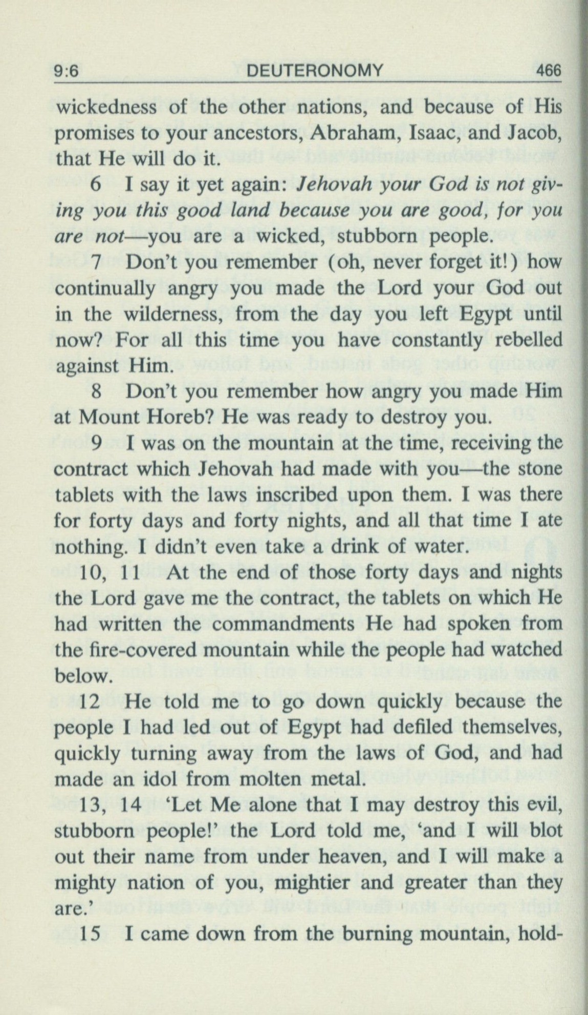 1969年Living Books of Moses 申命記 9 章 6 節到 9 章 15 節