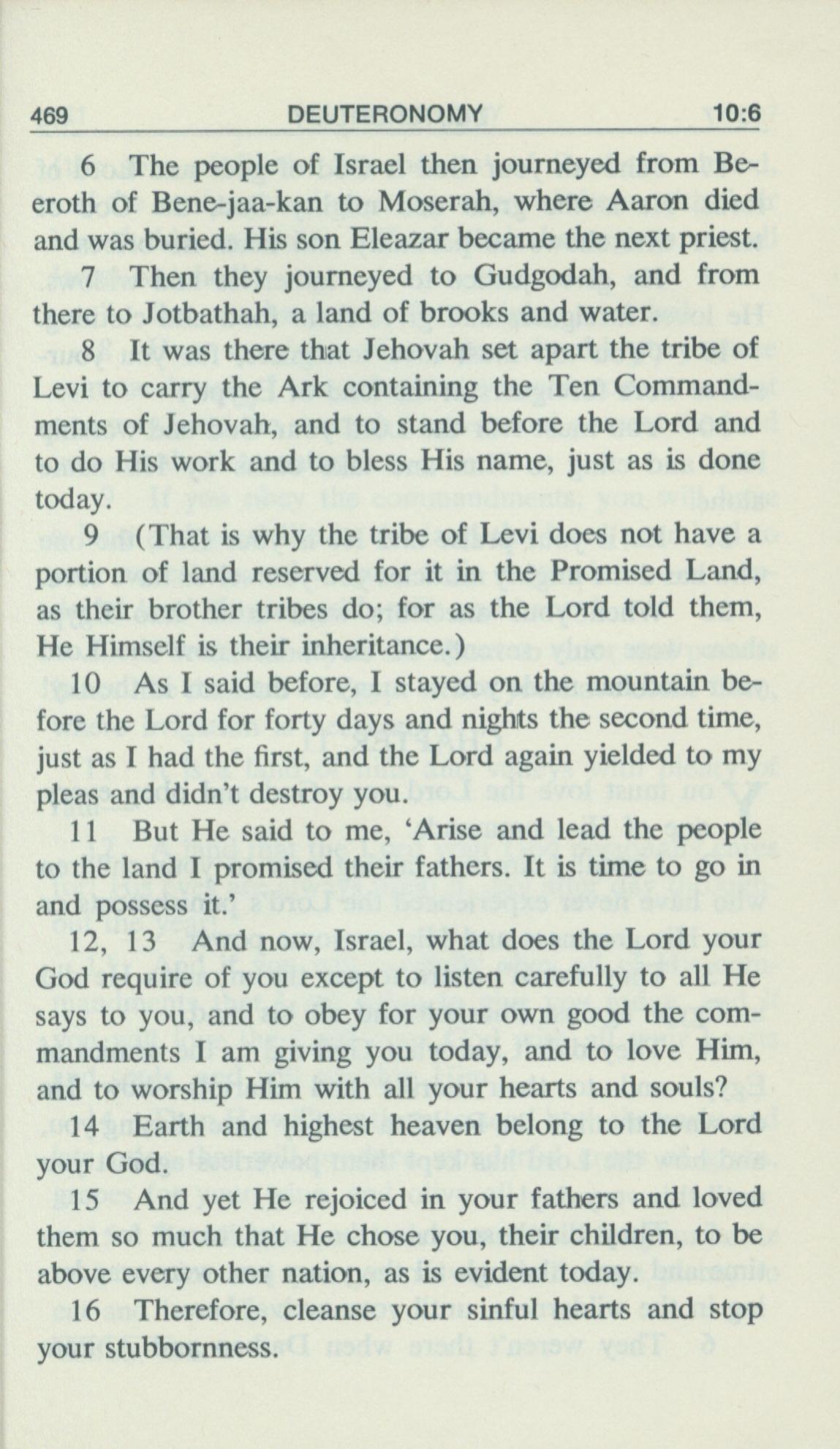 1969年Living Books of Moses 申命記 10 章 6 節到 10 章 16 節