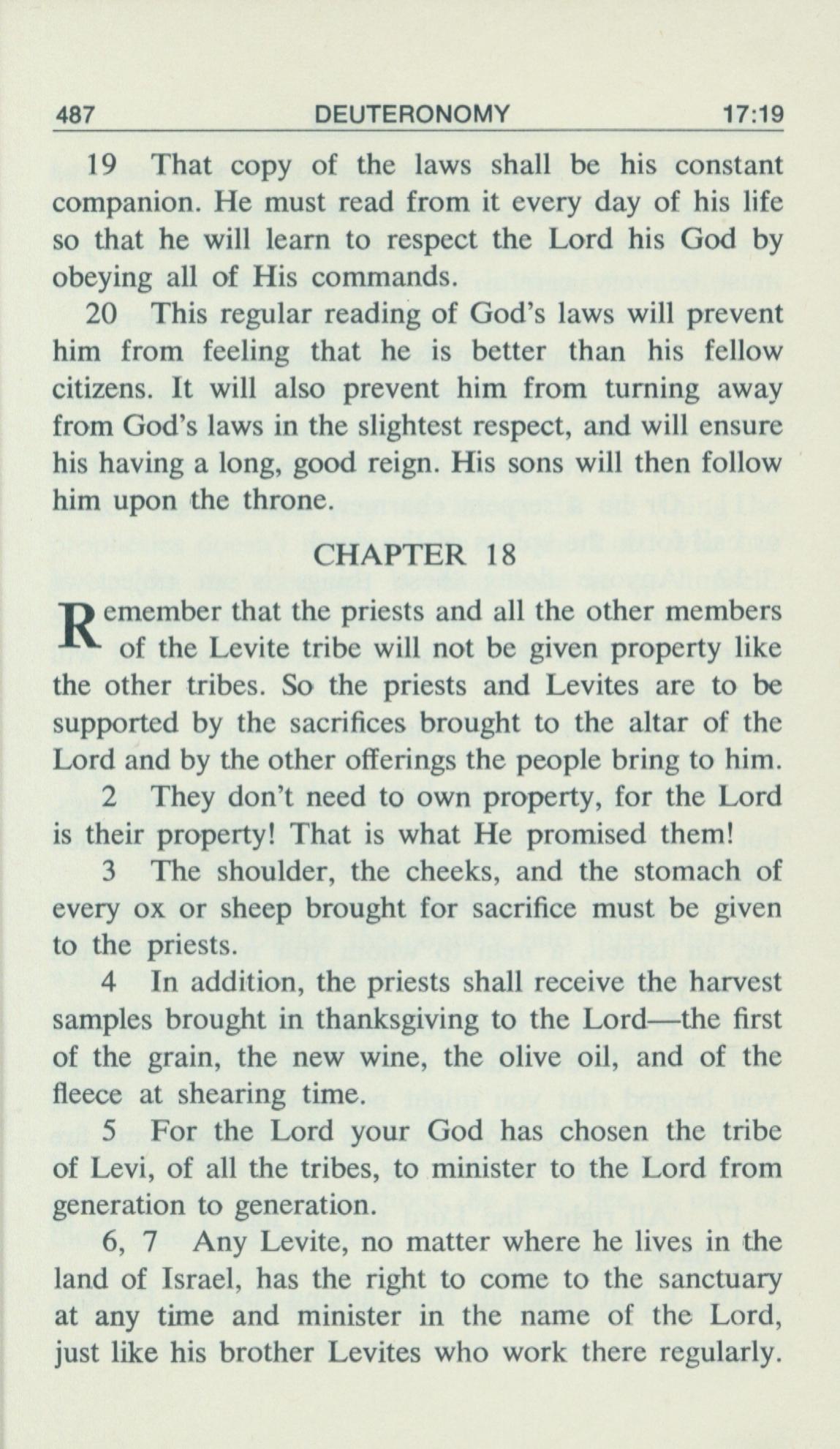 1969年Living Books of Moses 申命記 17 章 19 節到 18 章 7 節