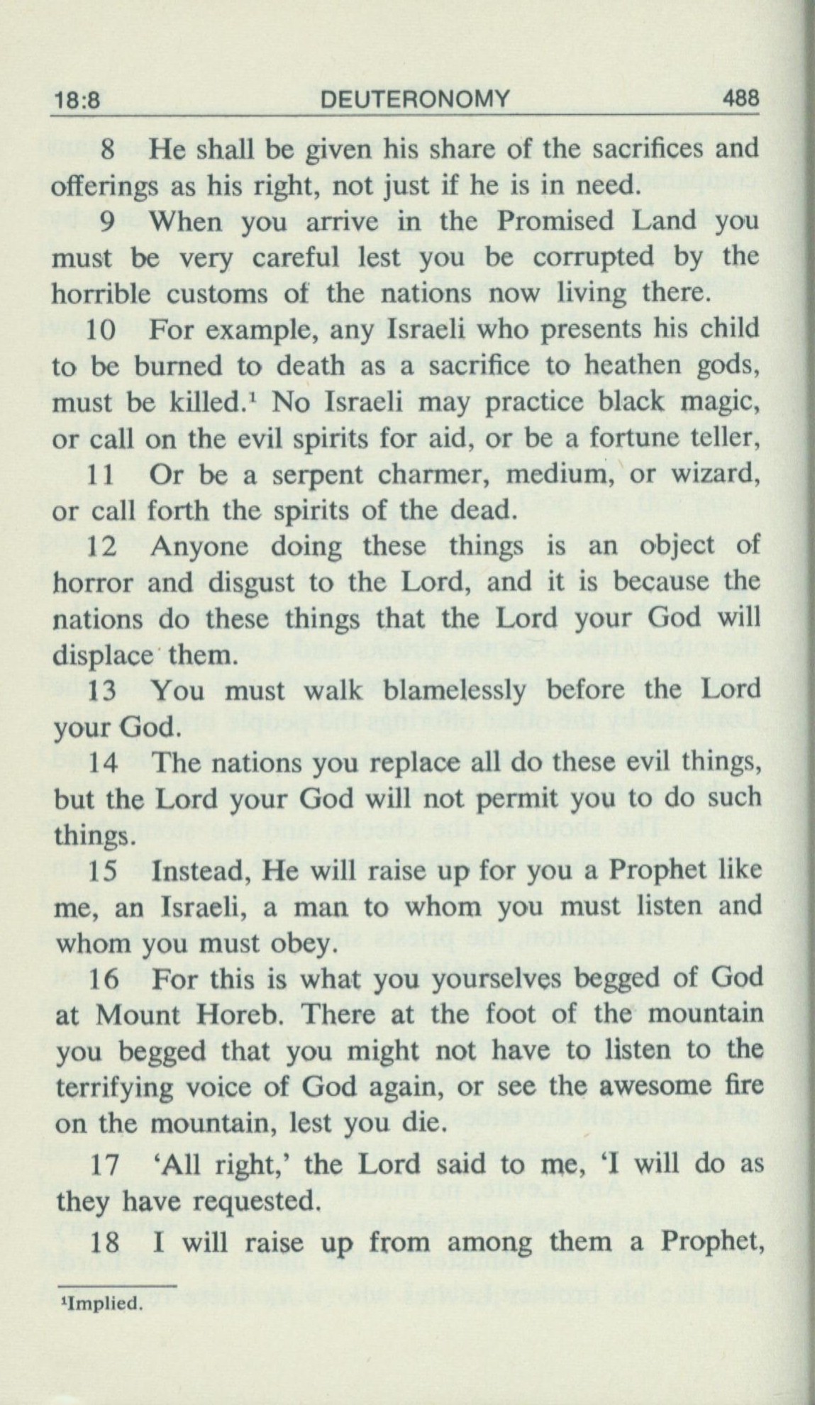 1969年Living Books of Moses 申命記 18 章 8 節到 18 章 18 節