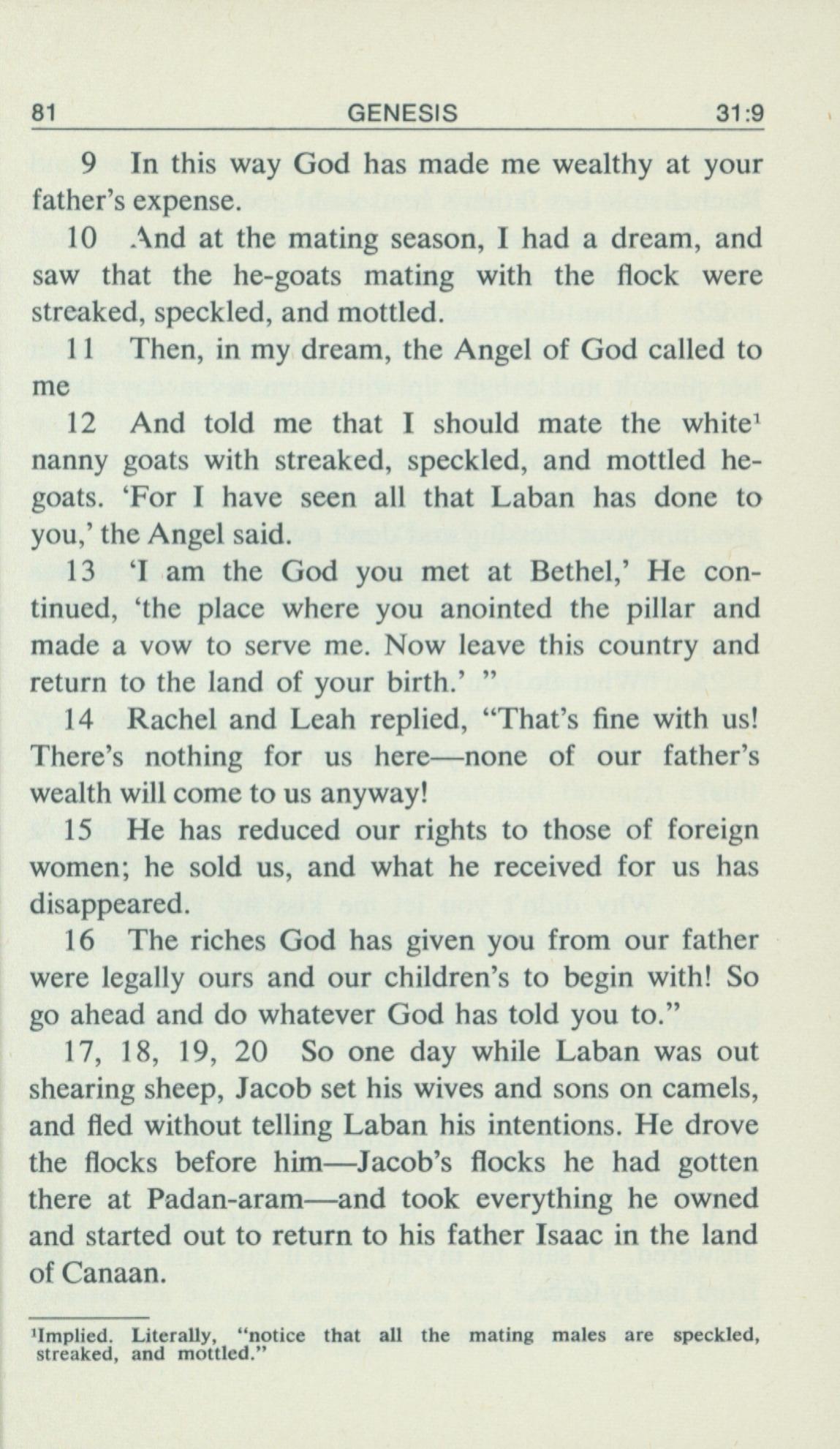 1969年Living Books of Moses 創世記 31 章 9 節到 31 章 20 節