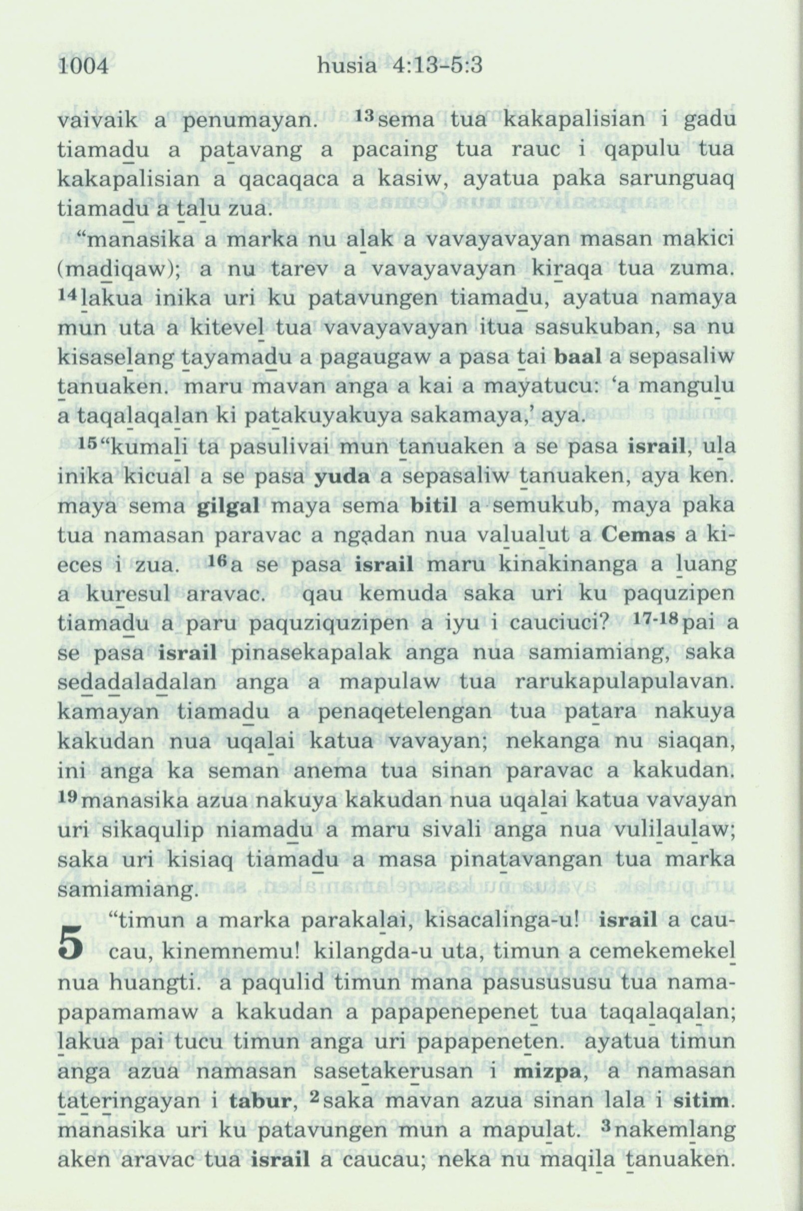 1993年新舊約全書 何西阿書 4 章 13 節到 5 章 3 節