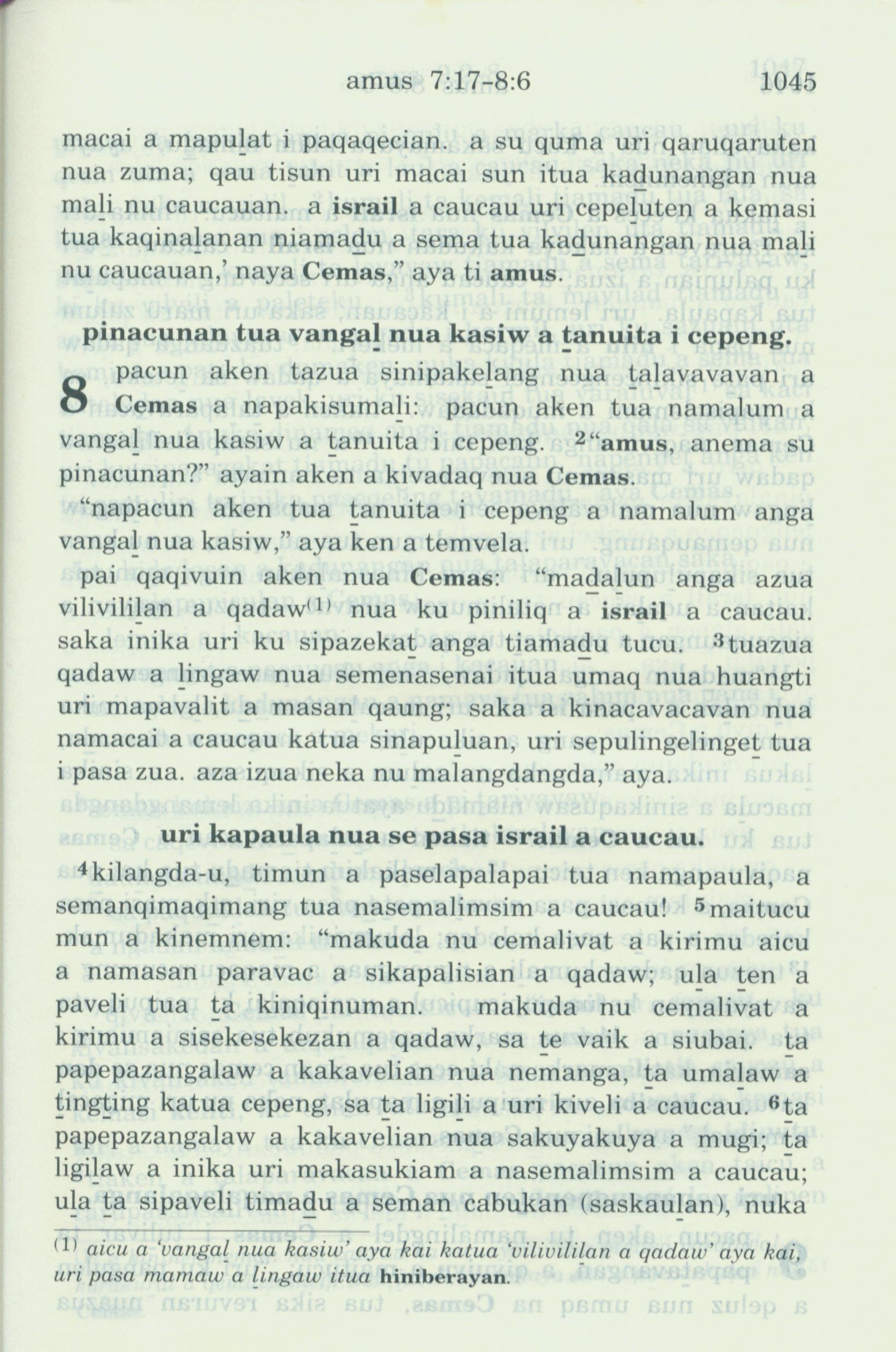 1993年新舊約全書 阿摩司書 7 章 17 節到 8 章 6 節