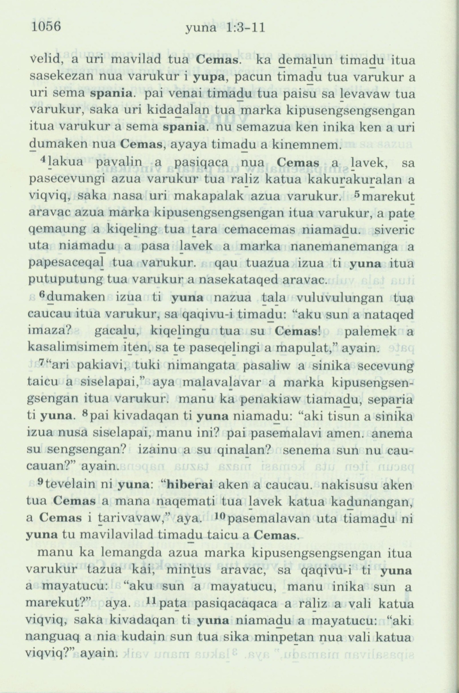 1993年新舊約全書 約拿書 1 章 3 節到 1 章 11 節