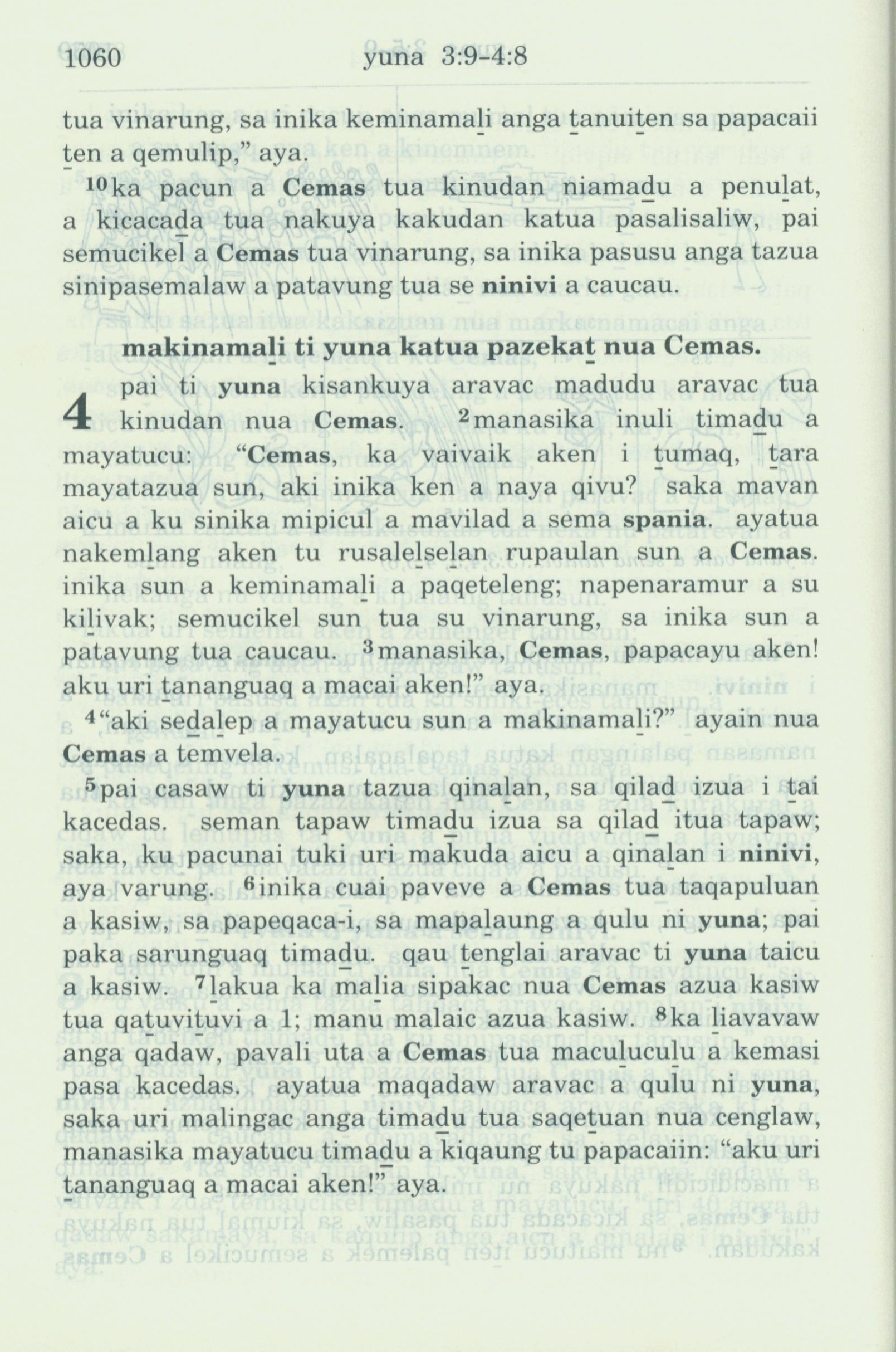 1993年新舊約全書 約拿書 3 章 10 節到 4 章 8 節