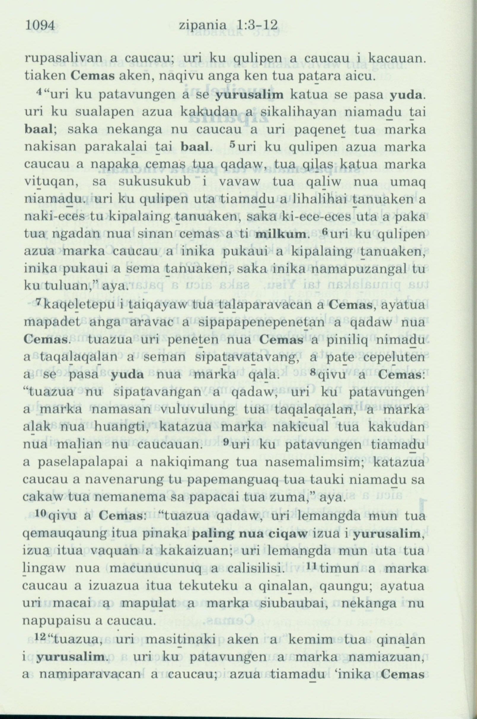 1993年新舊約全書 西番雅書 1 章 4 節到 1 章 12 節