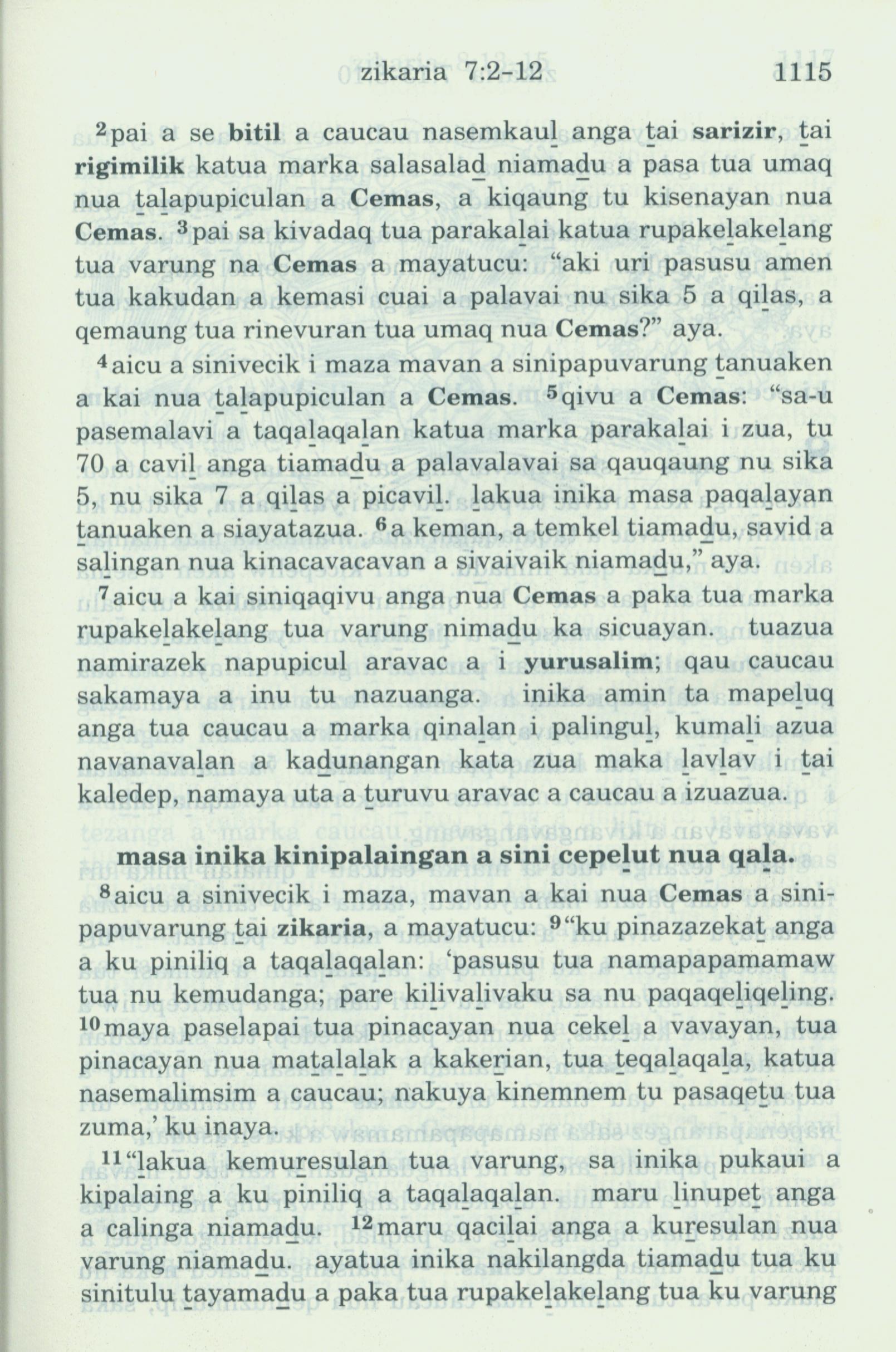 1993年新舊約全書 撒迦利亞書 7 章 2 節到 7 章 12 節