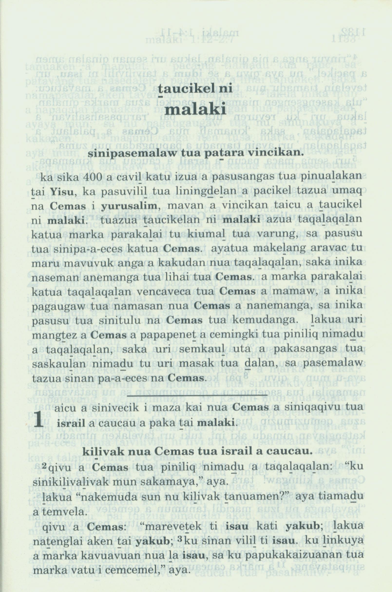 1993年新舊約全書 瑪拉基書 1 章 1 節到 1 章 3 節