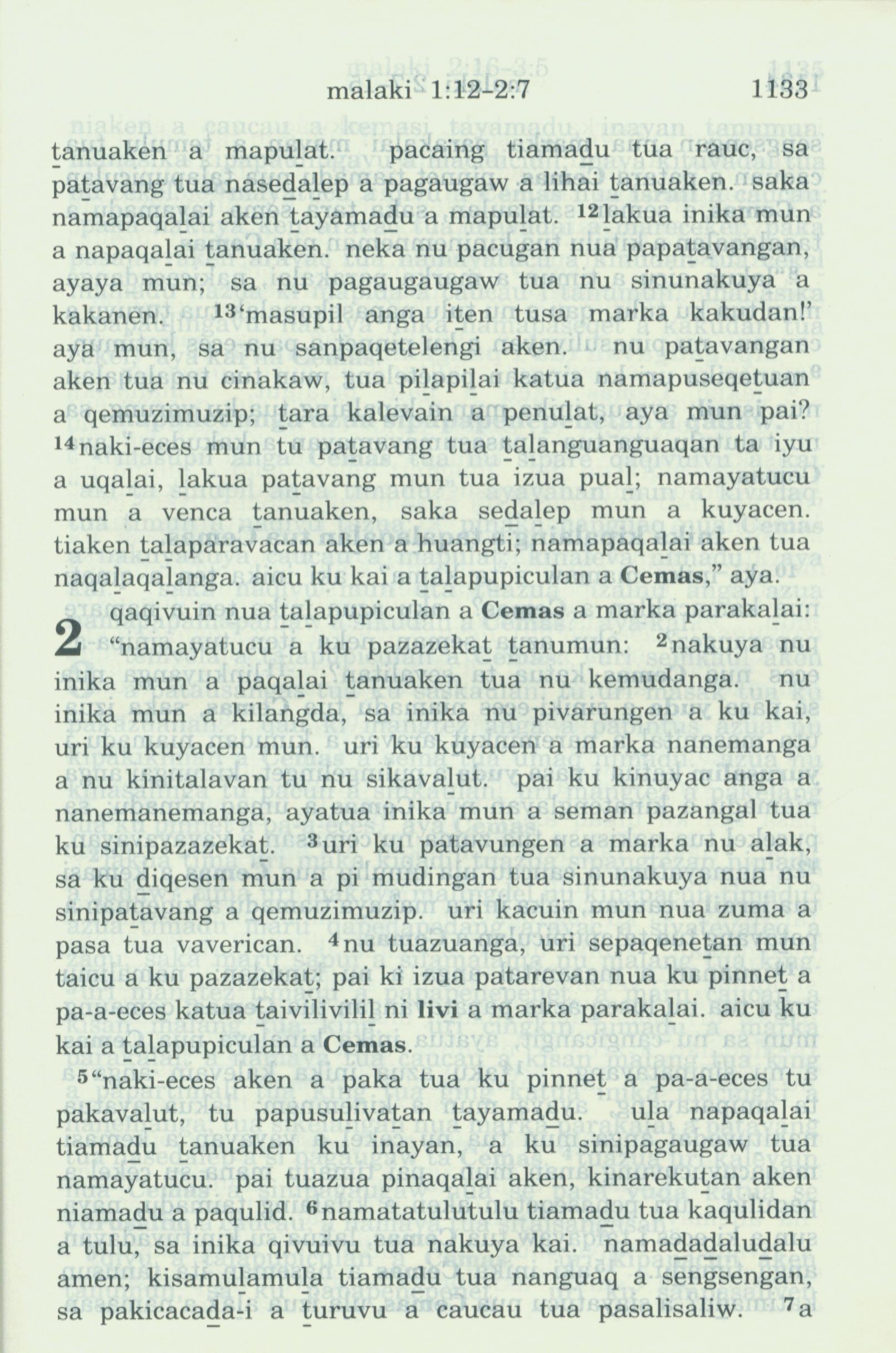1993年新舊約全書 瑪拉基書 1 章 12 節到 2 章 6 節