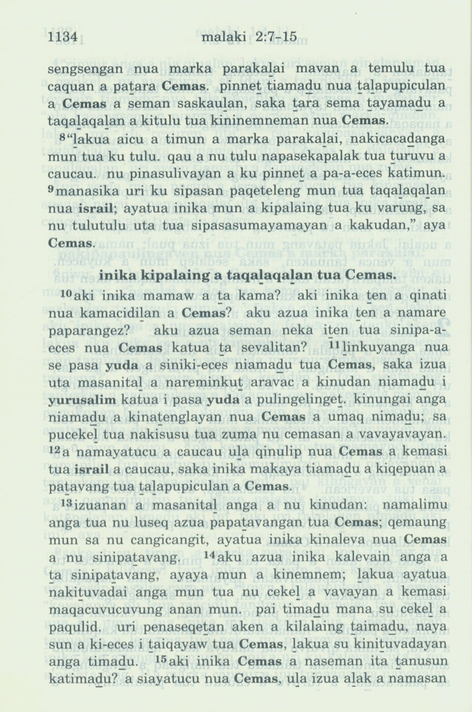 1993年新舊約全書 瑪拉基書 2 章 7 節到 2 章 15 節