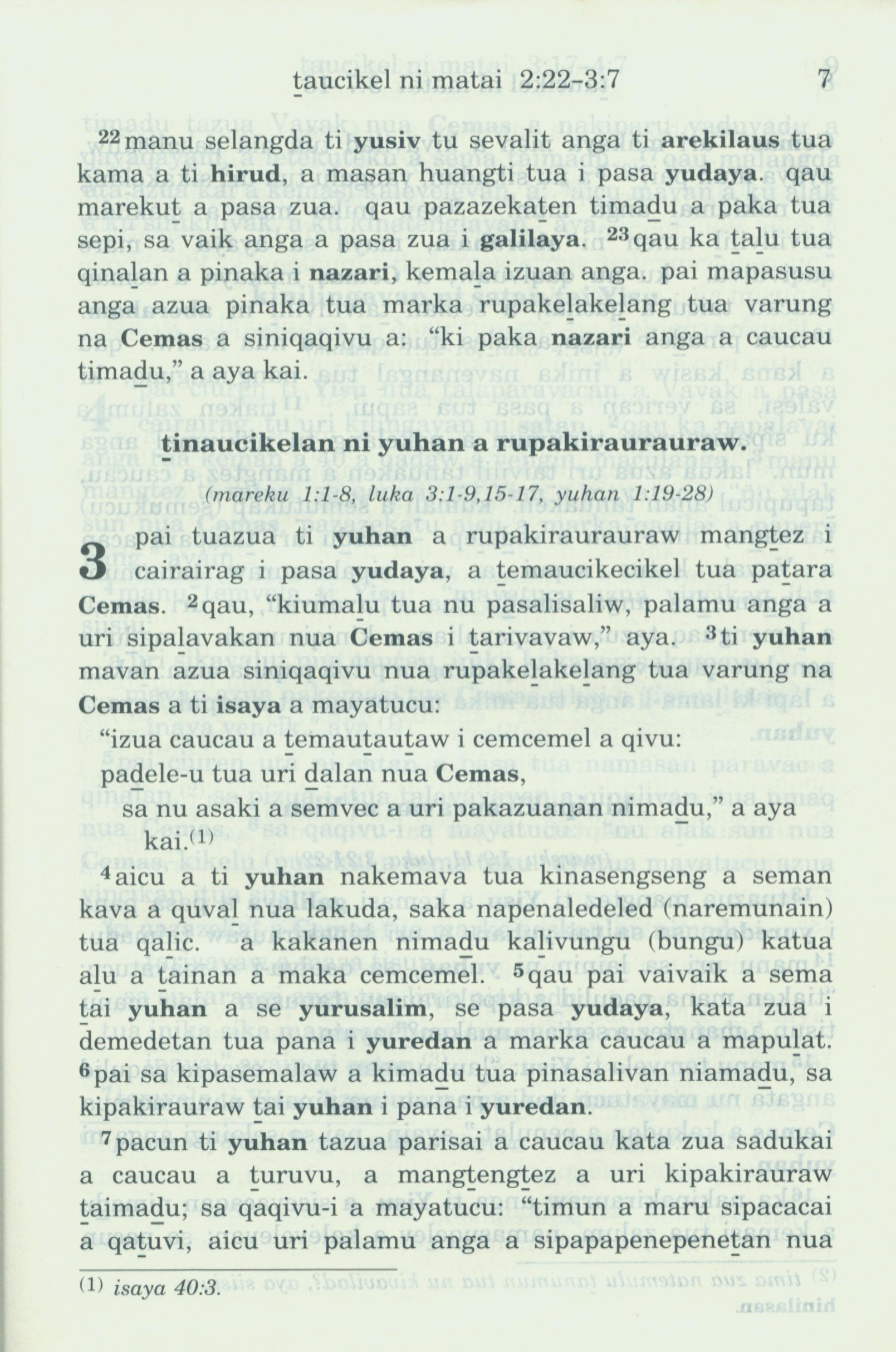 1993年新舊約全書 馬太福音 2 章 22 節到 3 章 7 節