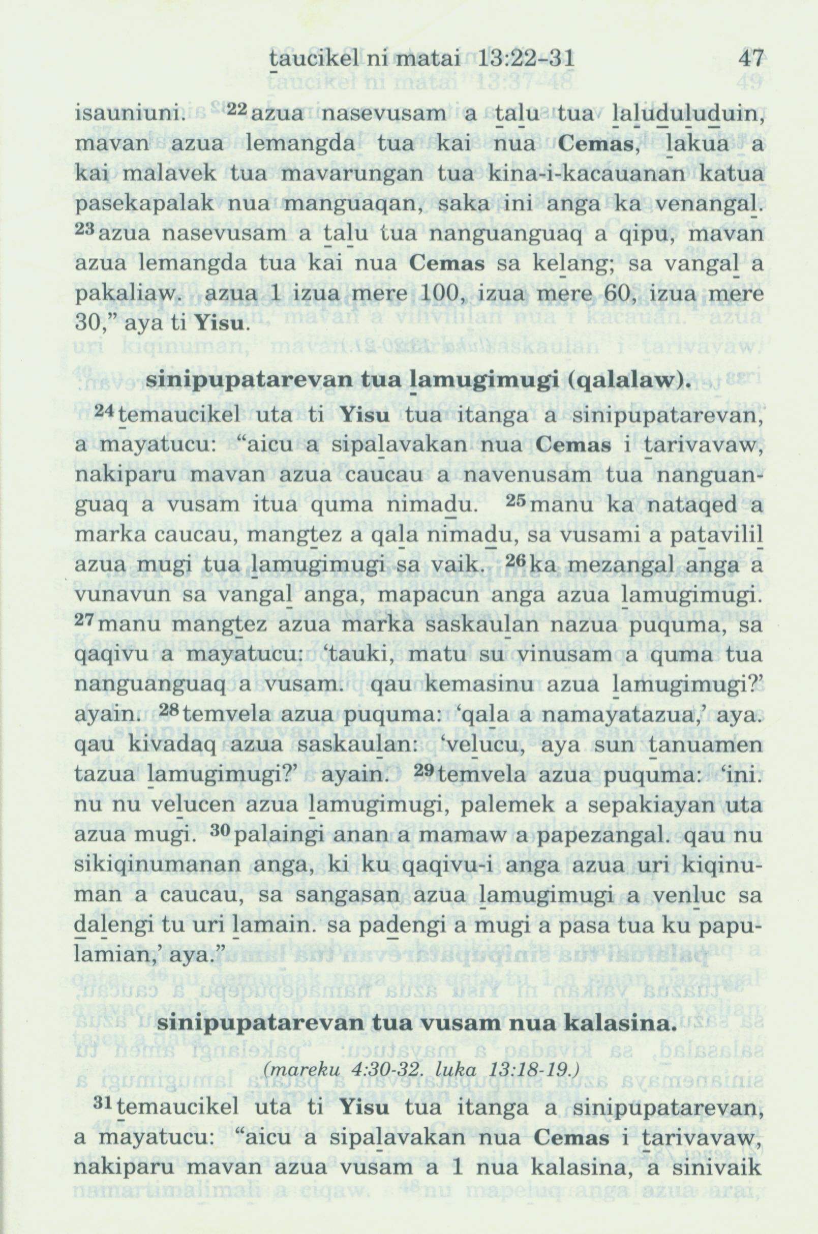 1993年新舊約全書 馬太福音 13 章 22 節到 13 章 31 節