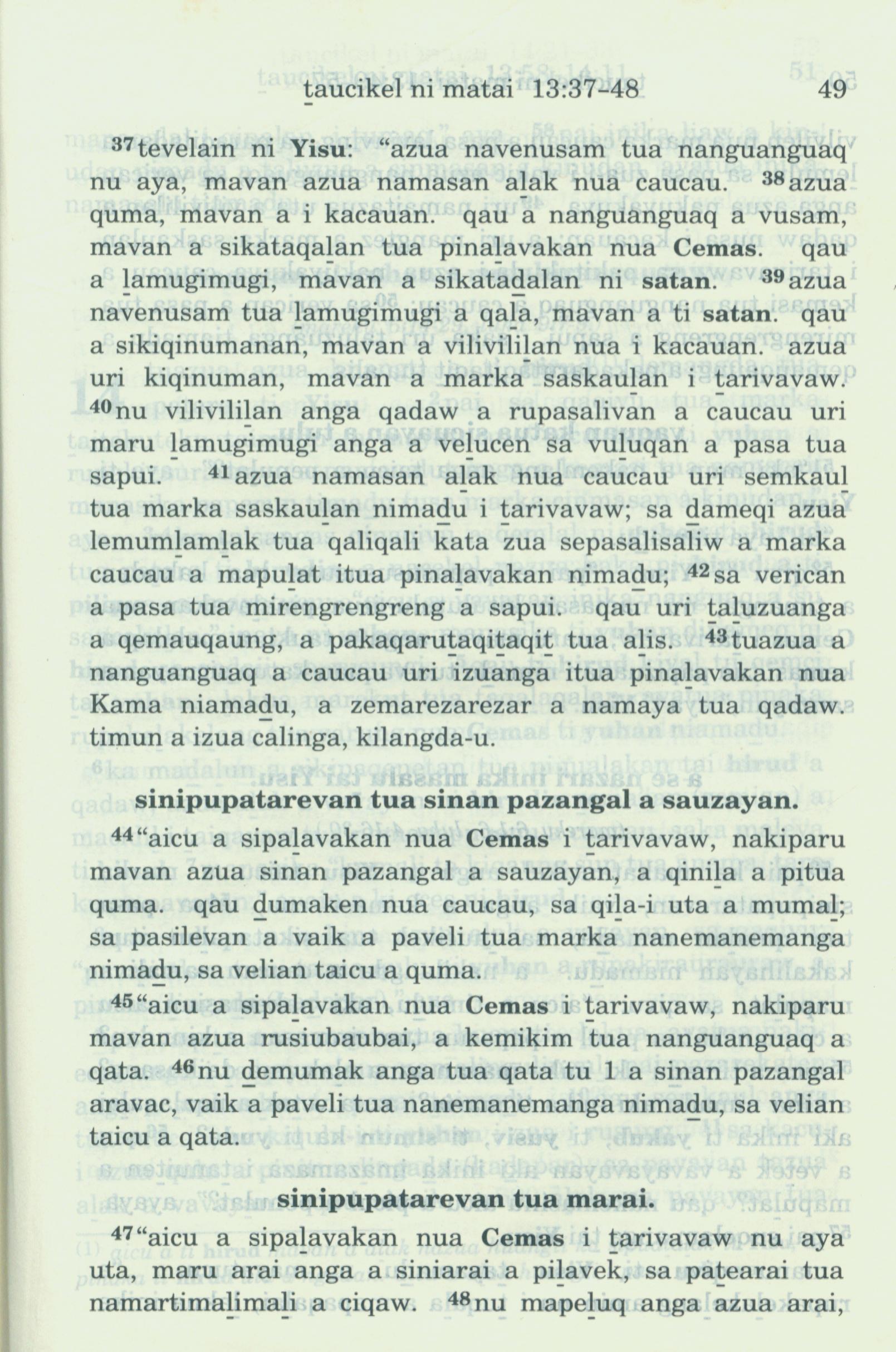 1993年新舊約全書 馬太福音 13 章 37 節到 13 章 48 節