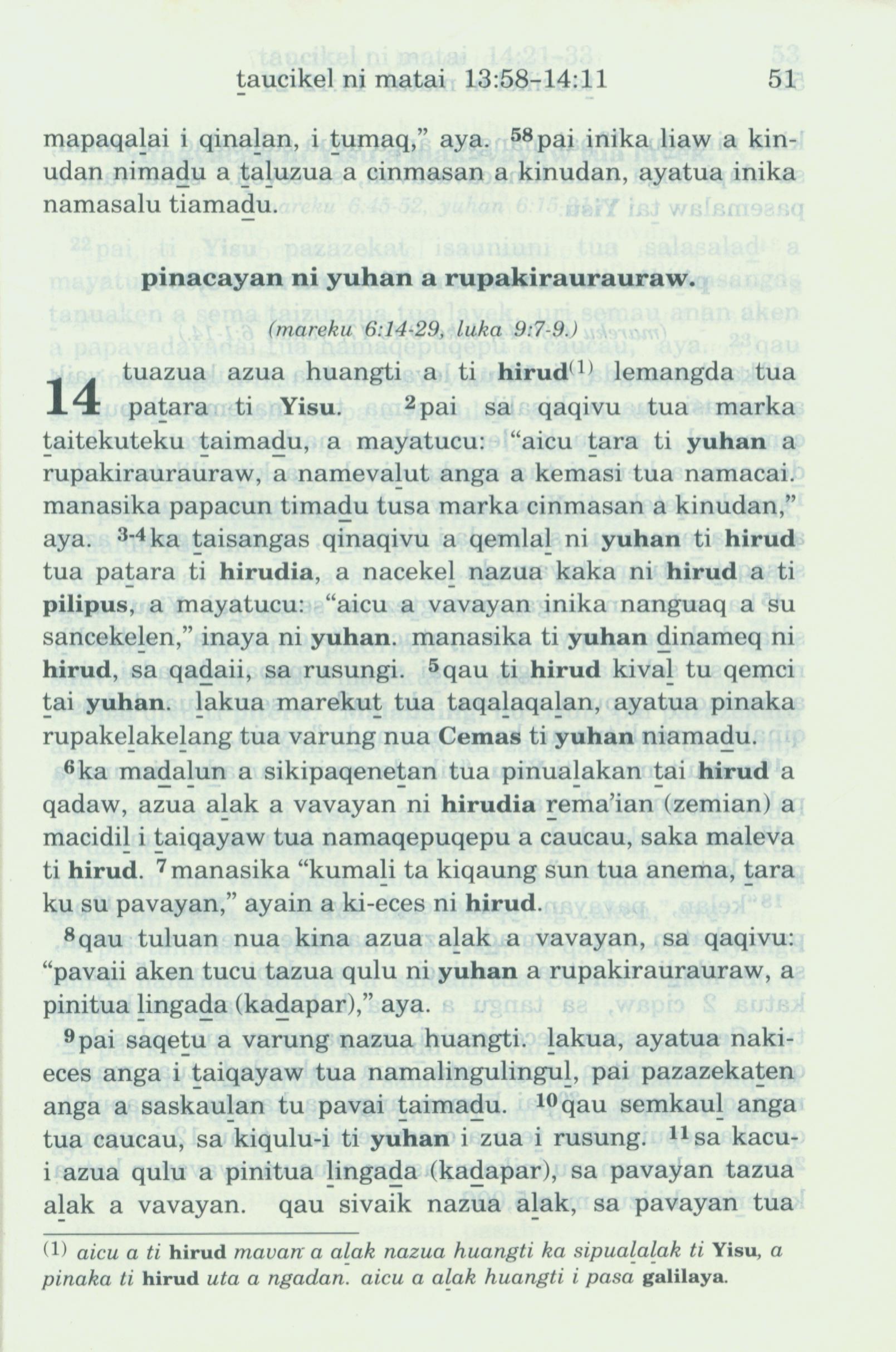 1993年新舊約全書 馬太福音 13 章 58 節到 14 章 11 節