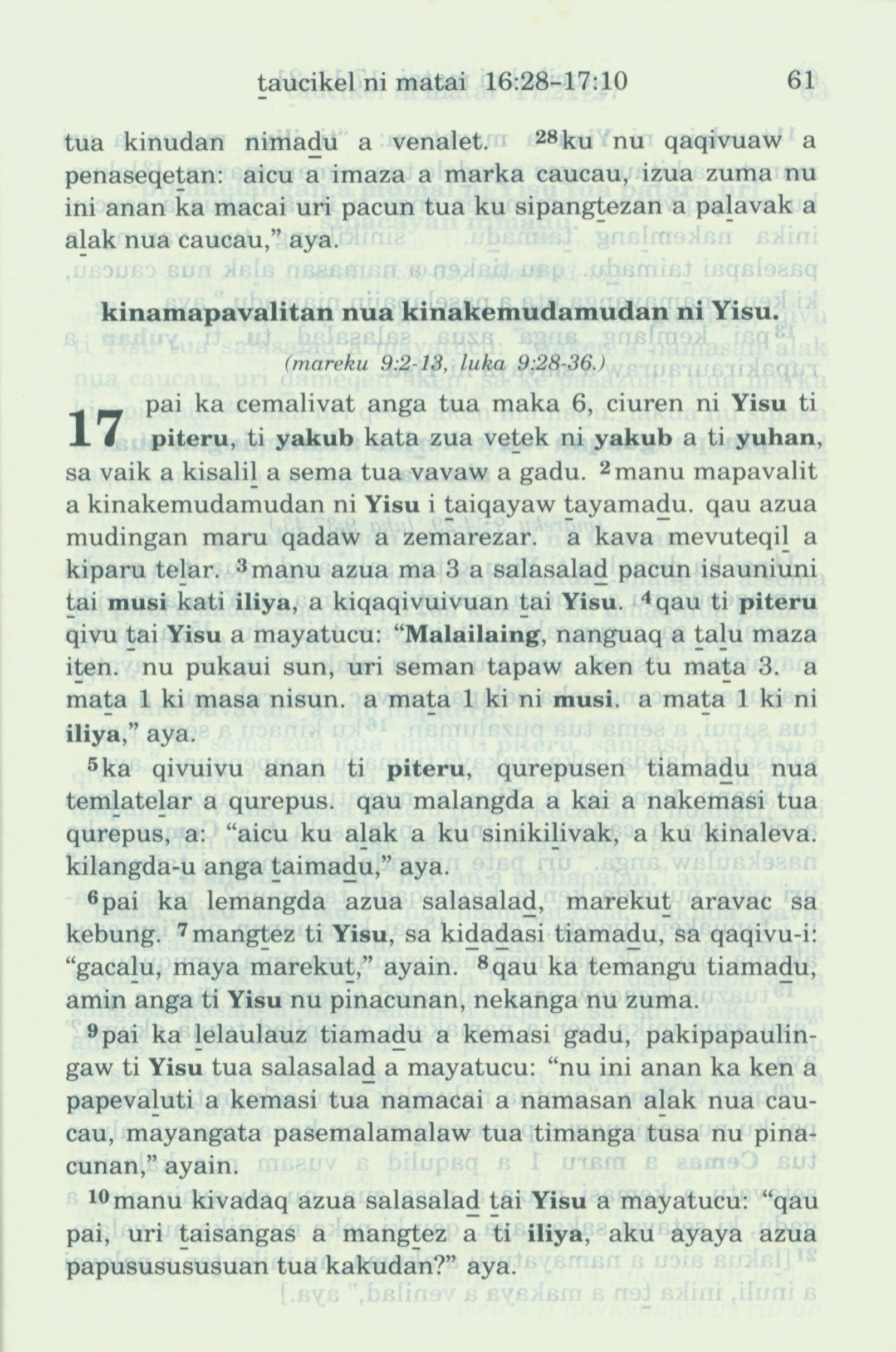1993年新舊約全書 馬太福音 16 章 28 節到 17 章 10 節