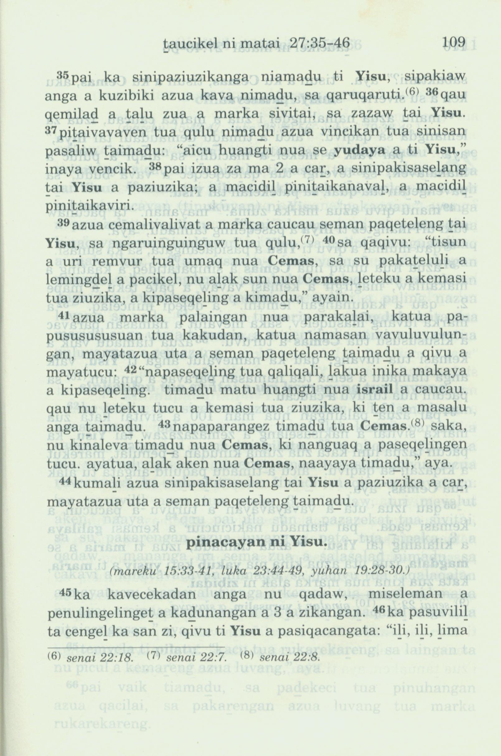 1993年新舊約全書 馬太福音 27 章 35 節到 27 章 46 節