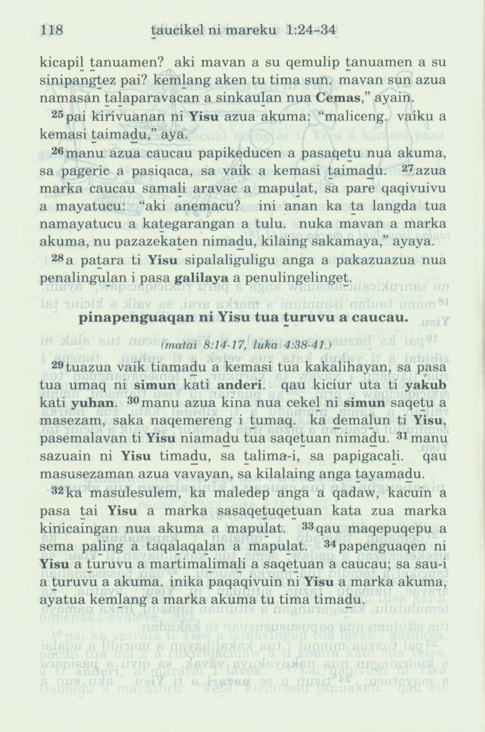 1993年新舊約全書 馬可福音 1 章 24 節到 1 章 34 節