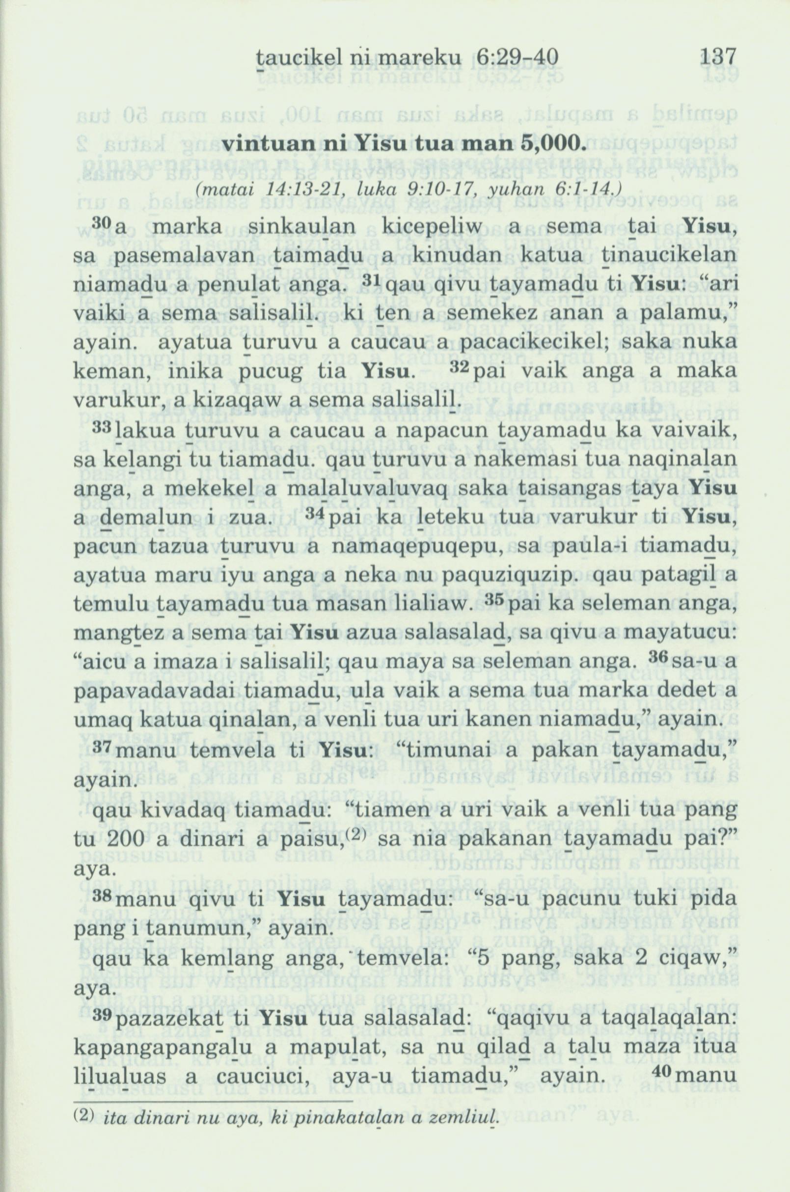 1993年新舊約全書 馬可福音 6 章 30 節到 6 章 40 節