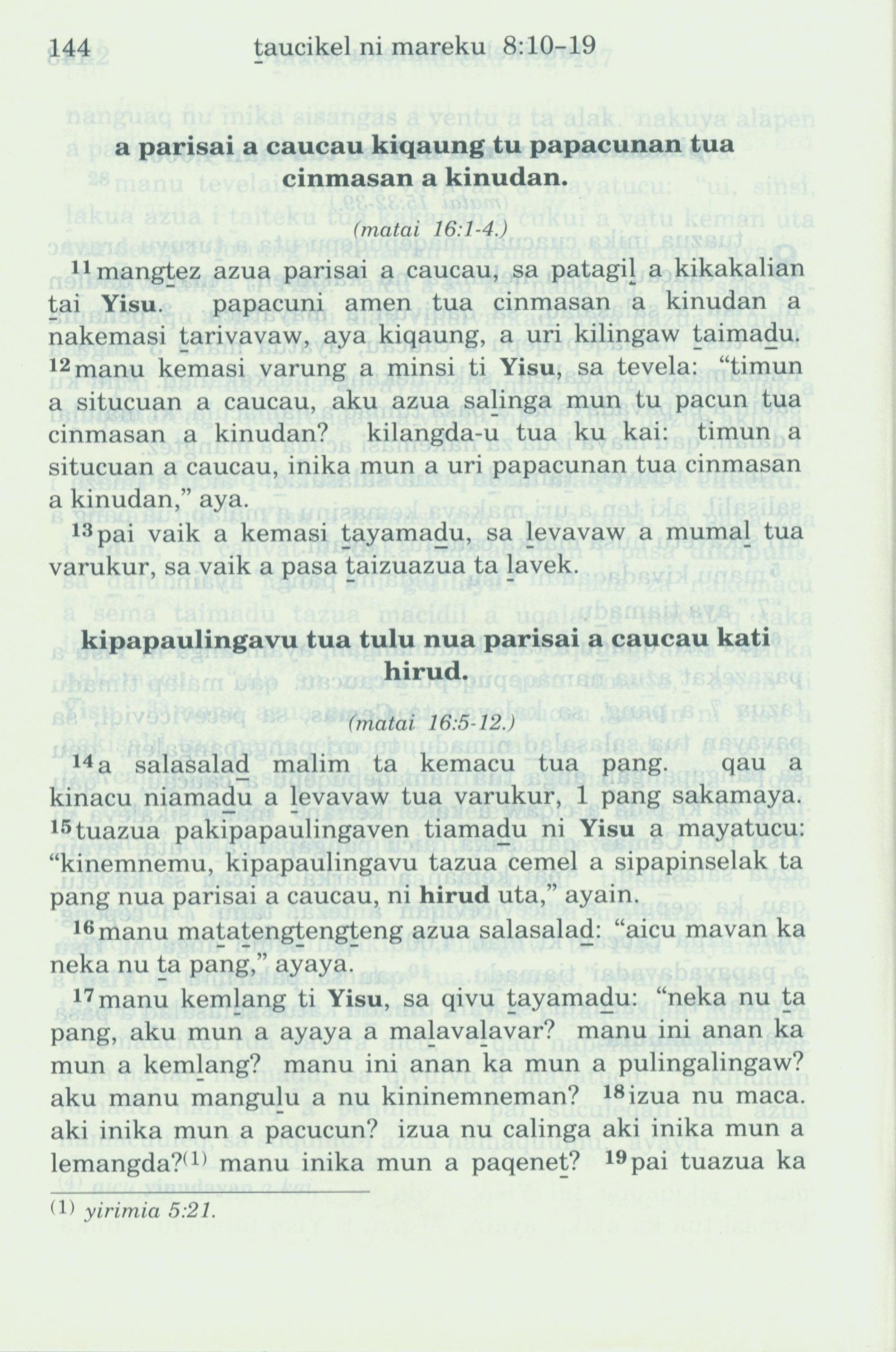 1993年新舊約全書 馬可福音 8 章 11 節到 8 章 18 節
