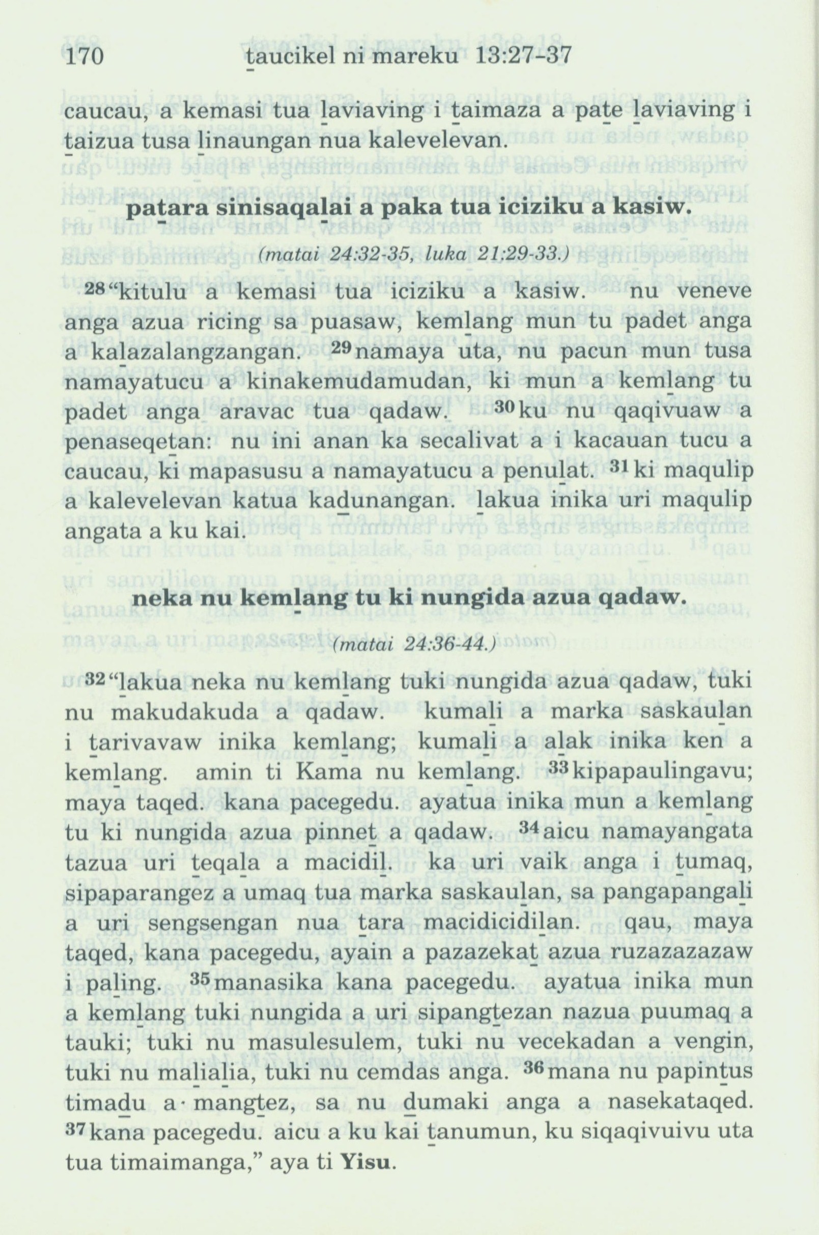 1993年新舊約全書 馬可福音 13 章 28 節到 13 章 37 節