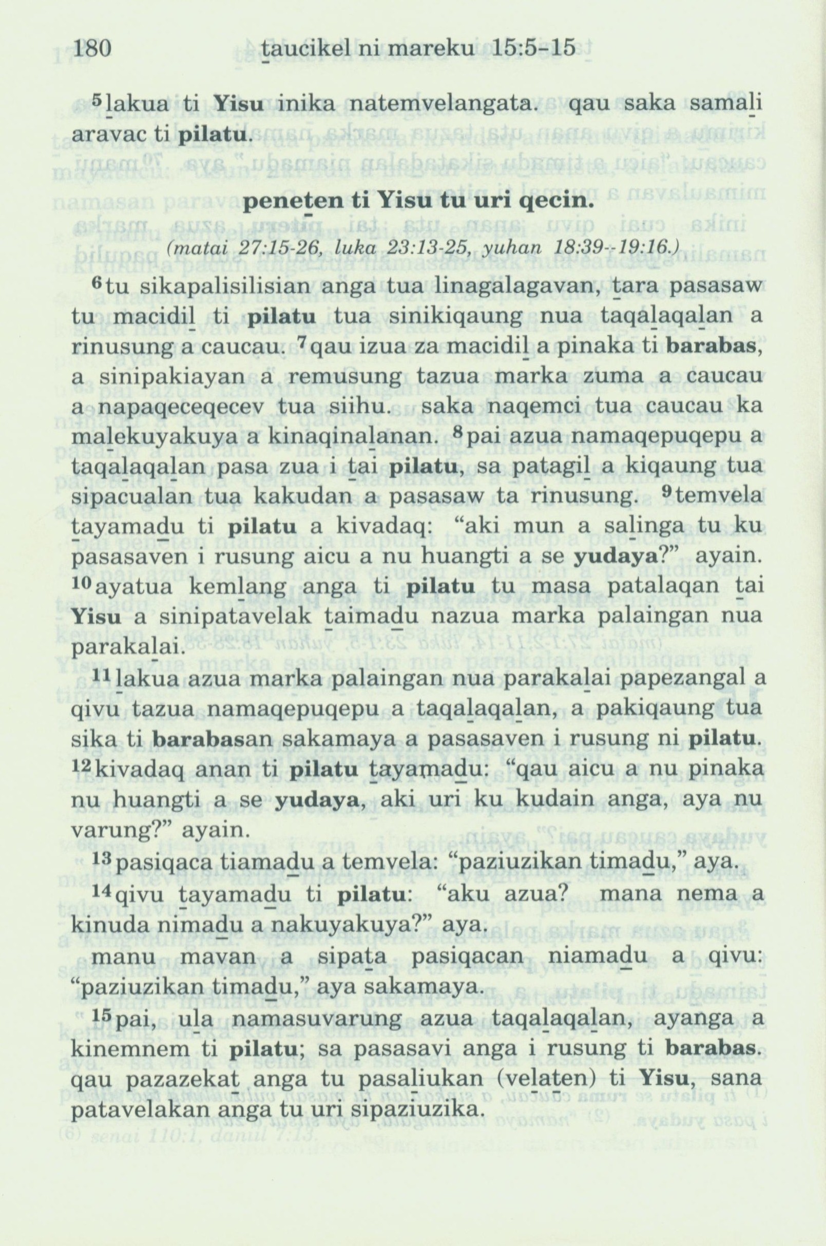 1993年新舊約全書 馬可福音 15 章 5 節到 15 章 15 節