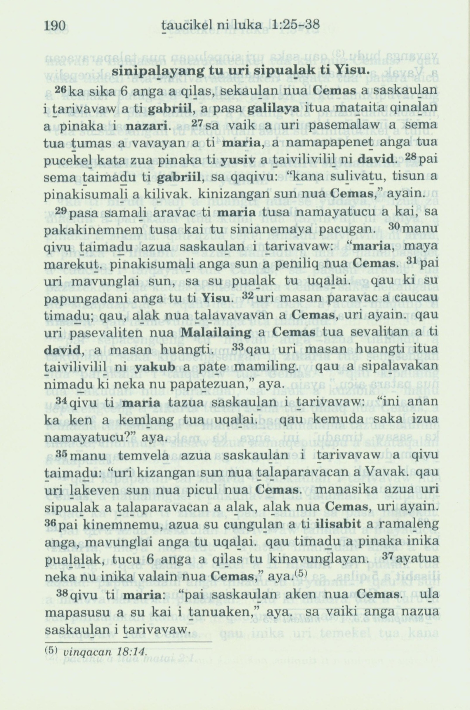 1993年新舊約全書 路加福音 1 章 26 節到 1 章 38 節