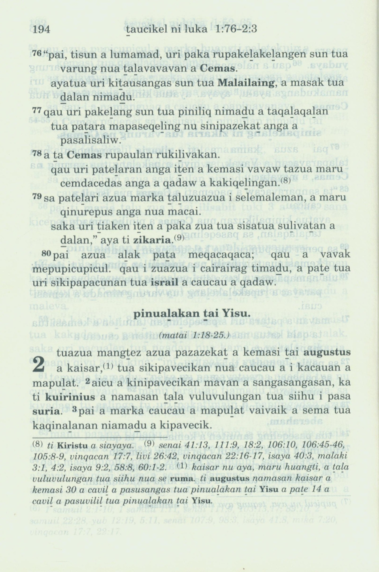1993年新舊約全書 路加福音 1 章 76 節到 2 章 3 節