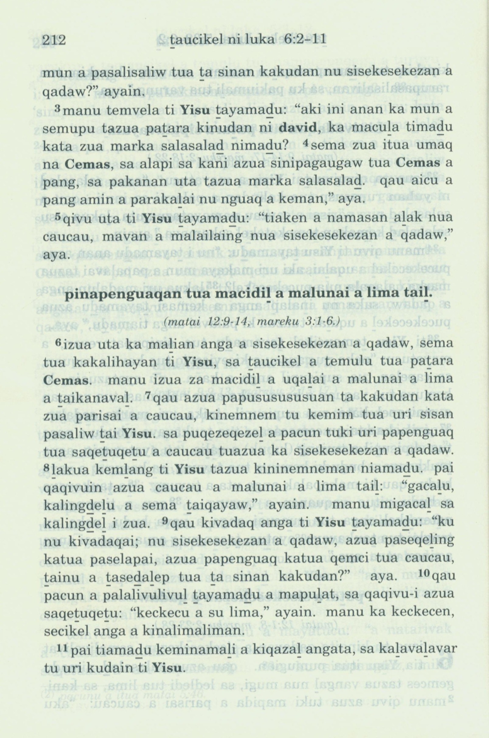 1993年新舊約全書 路加福音 6 章 3 節到 6 章 11 節
