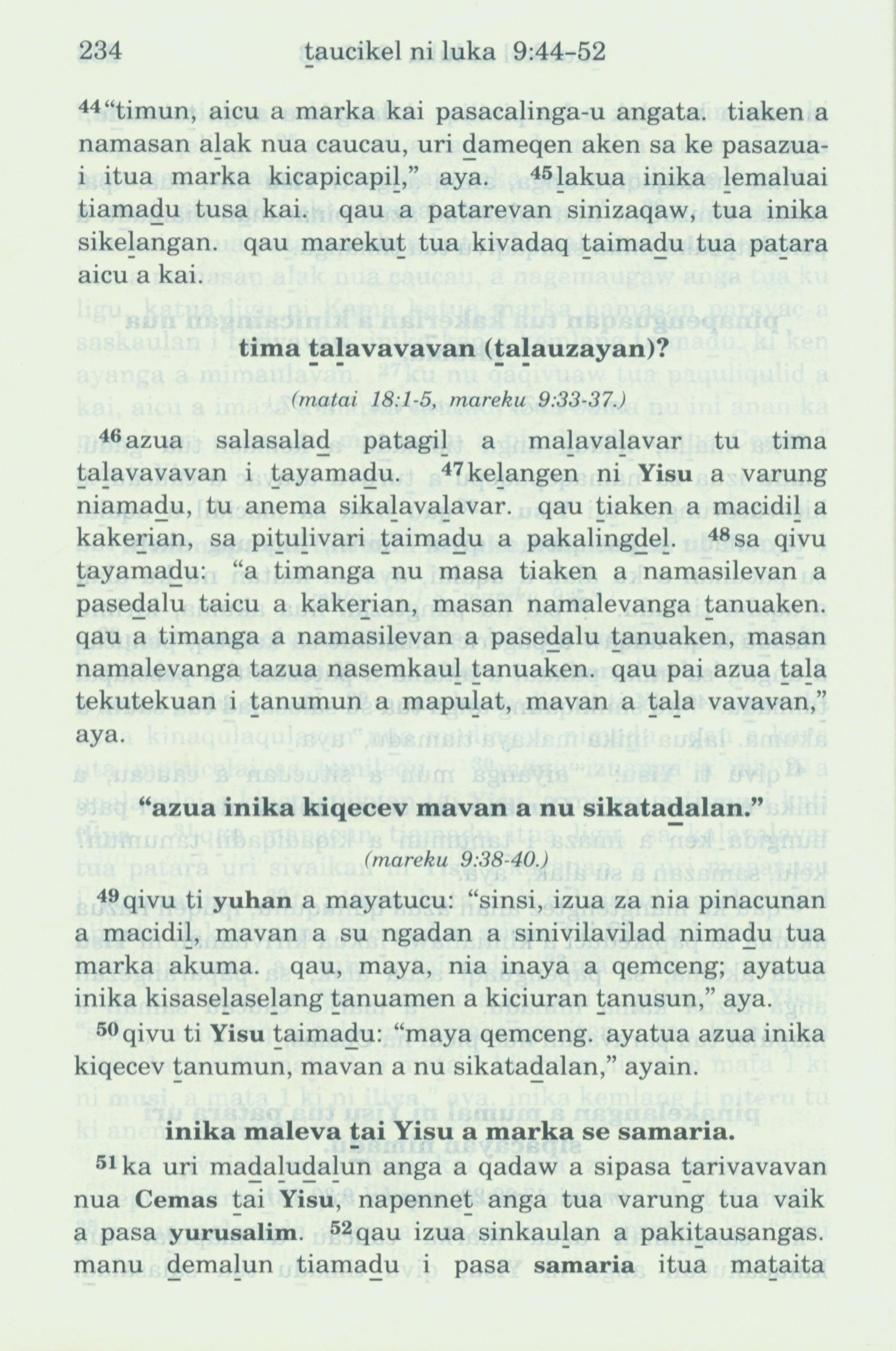 1993年新舊約全書 路加福音 9 章 44 節到 9 章 52 節