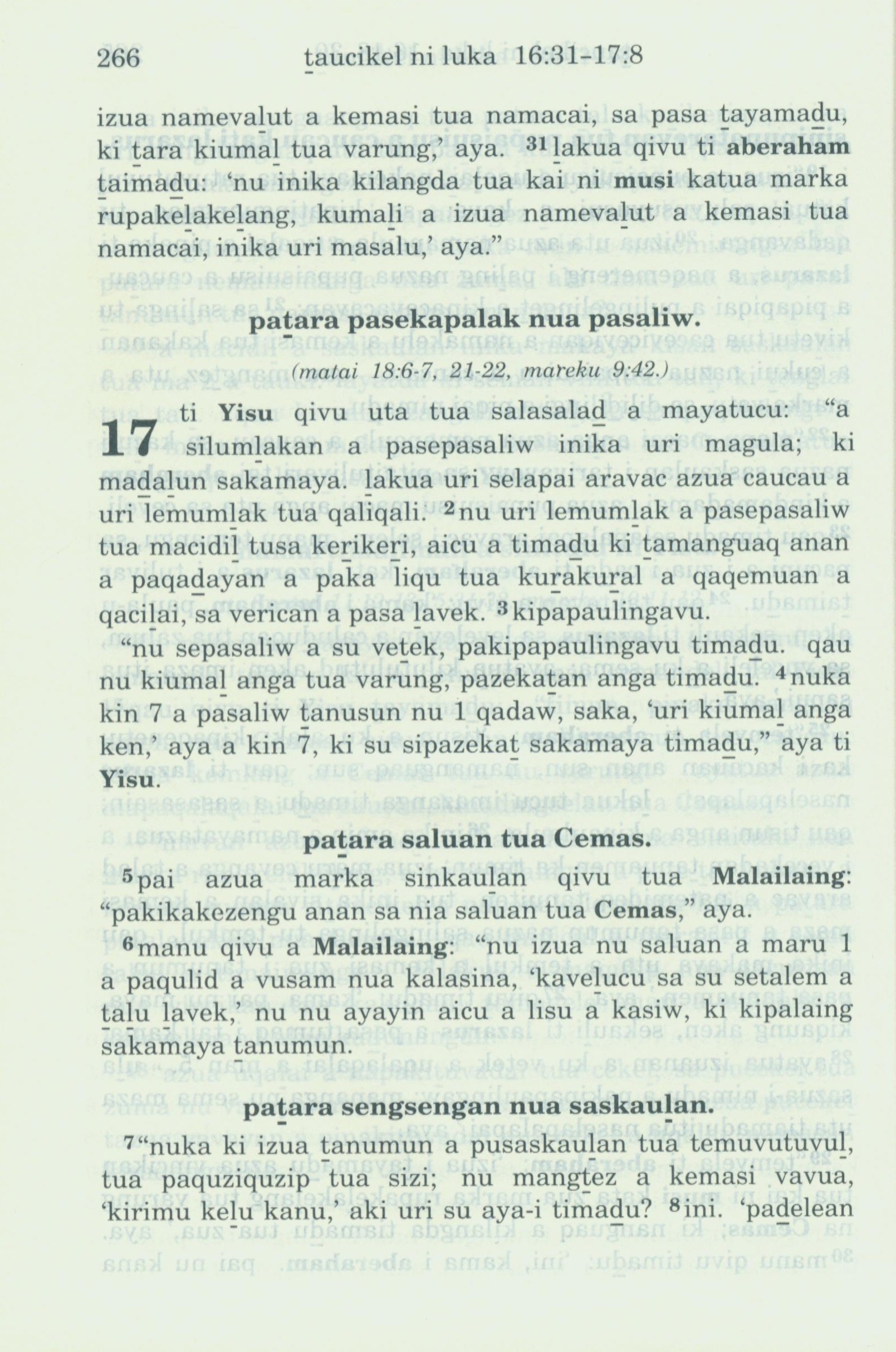 1993年新舊約全書 路加福音 16 章 31 節到 17 章 7 節