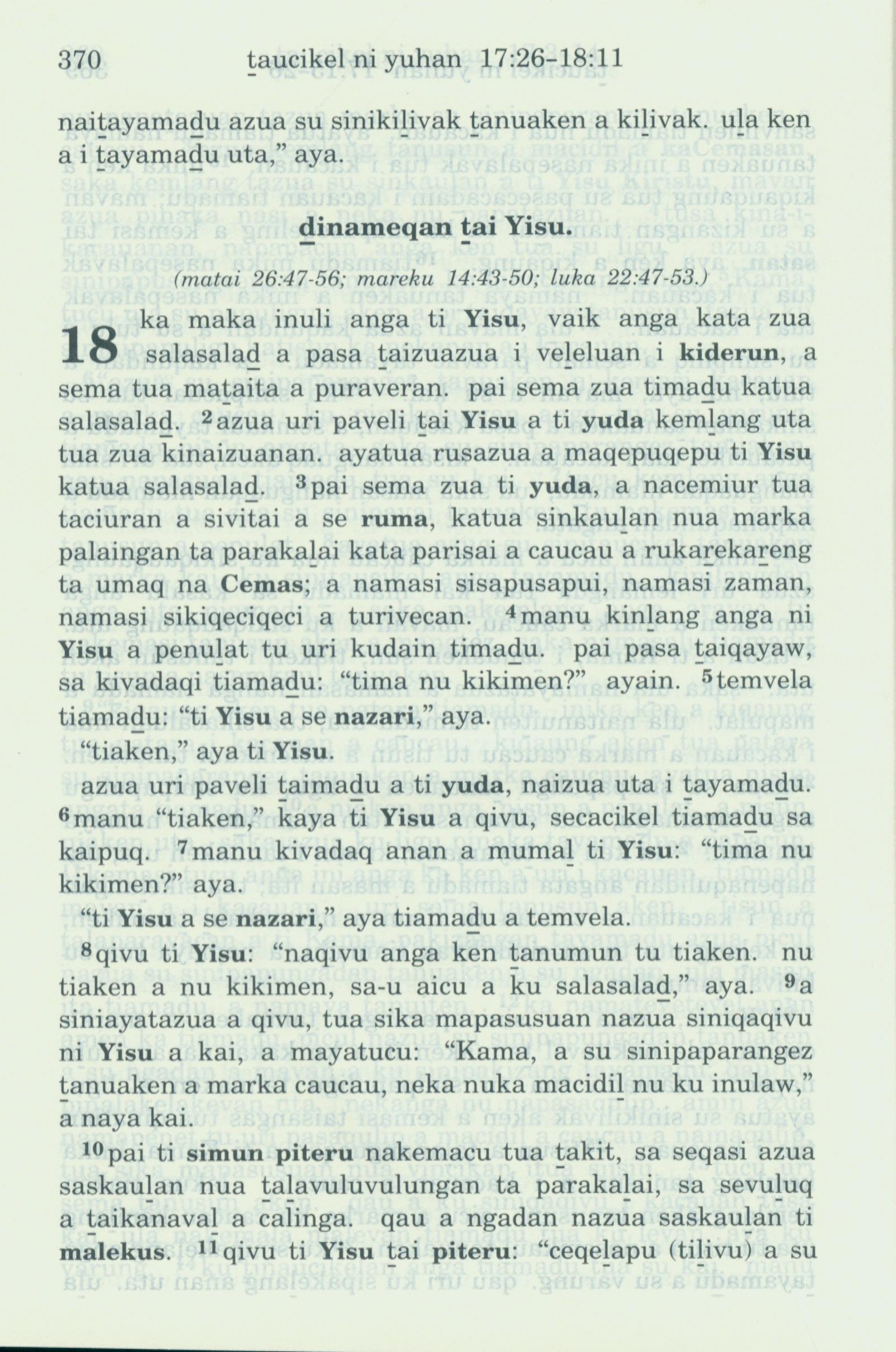 1993年新舊約全書 約翰福音 18 章 1 節到 18 章 11 節