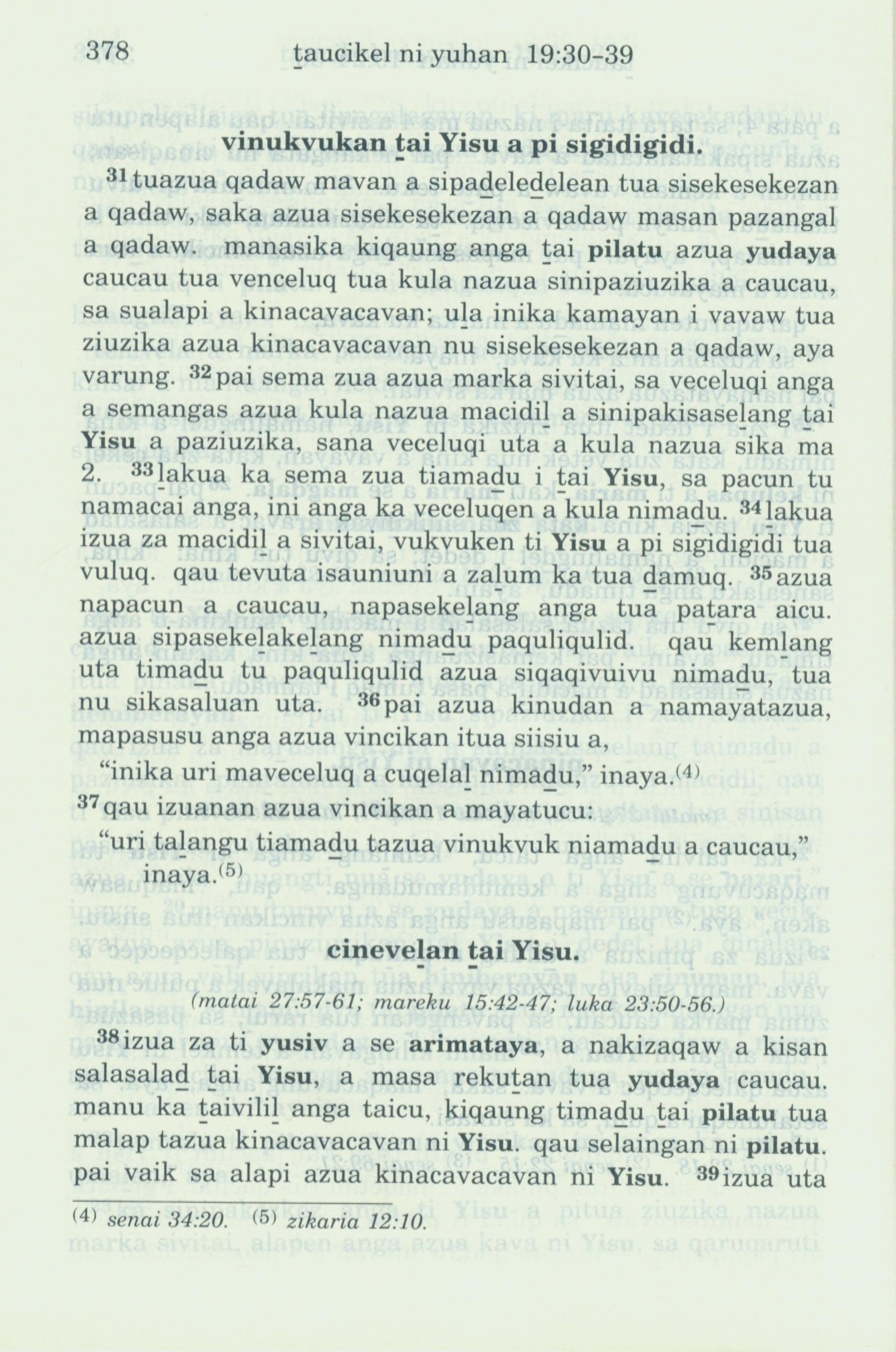 1993年新舊約全書 約翰福音 19 章 31 節到 19 章 38 節