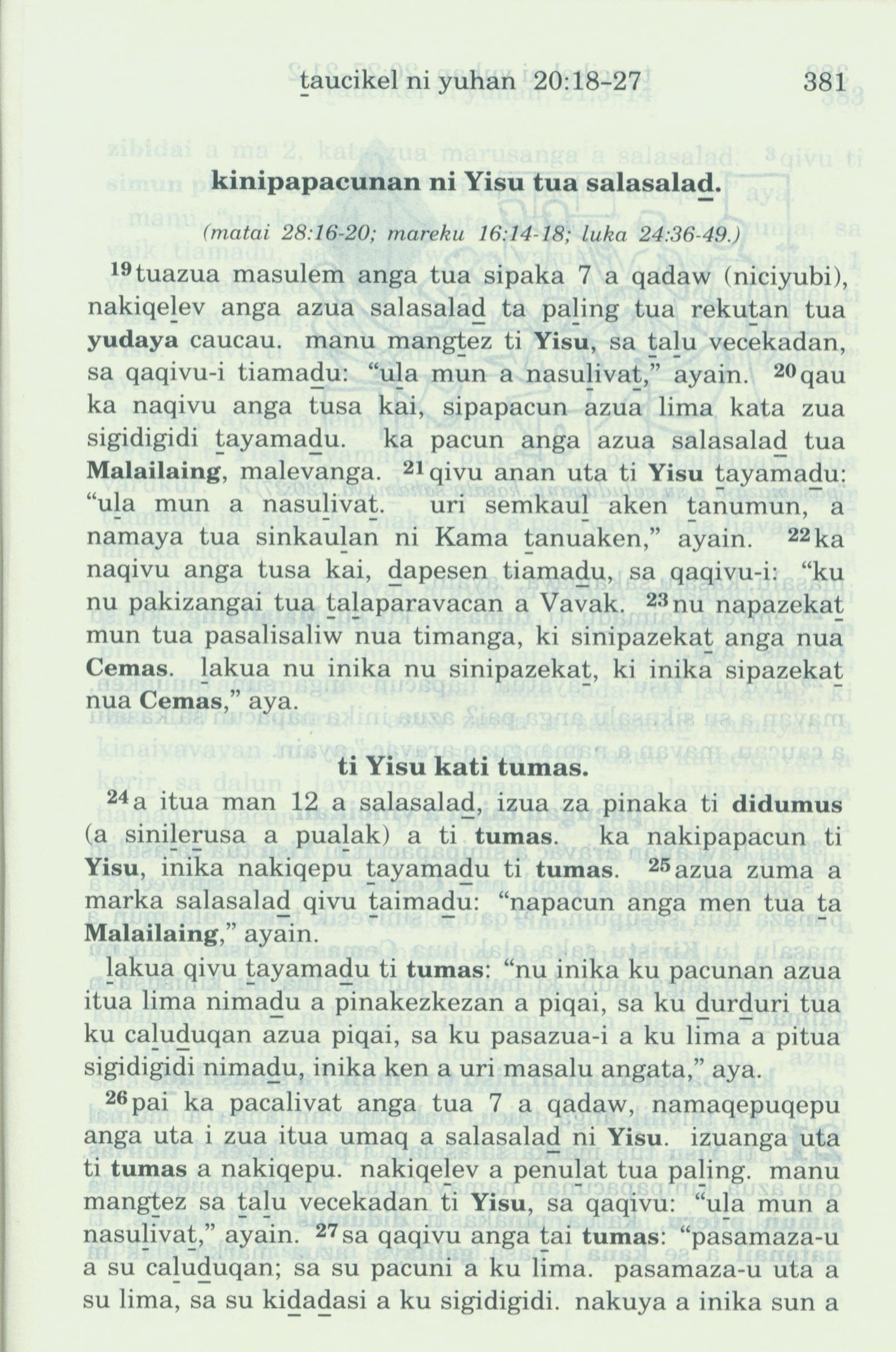 1993年新舊約全書 約翰福音 20 章 19 節到 20 章 27 節