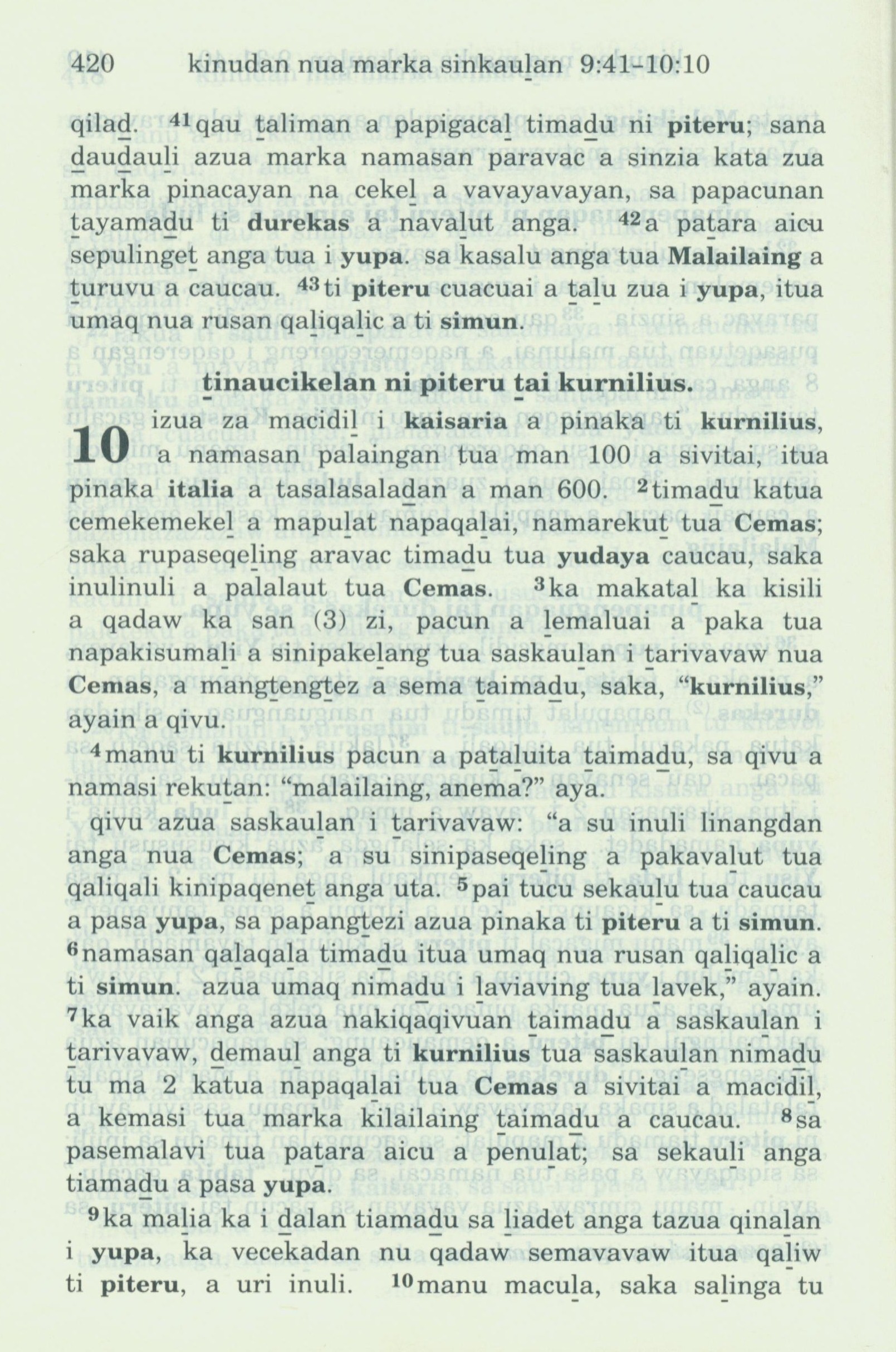 1993年新舊約全書 使徒行傳 9 章 41 節到 10 章 10 節