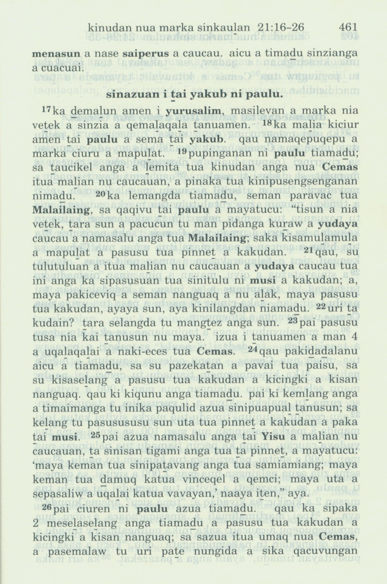 1993年新舊約全書 使徒行傳 21 章 17 節到 21 章 26 節
