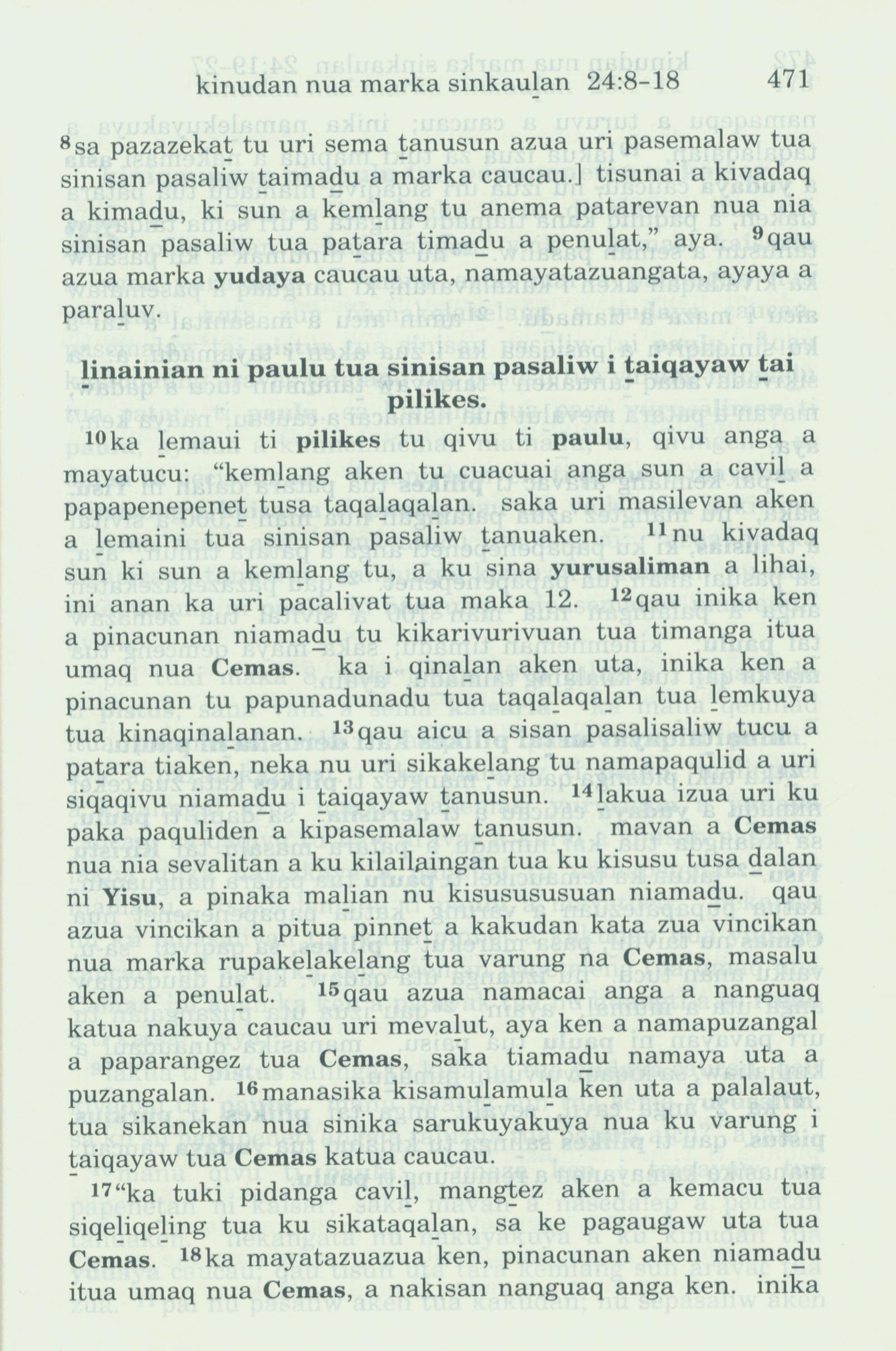 1993年新舊約全書 使徒行傳 24 章 8 節到 24 章 18 節